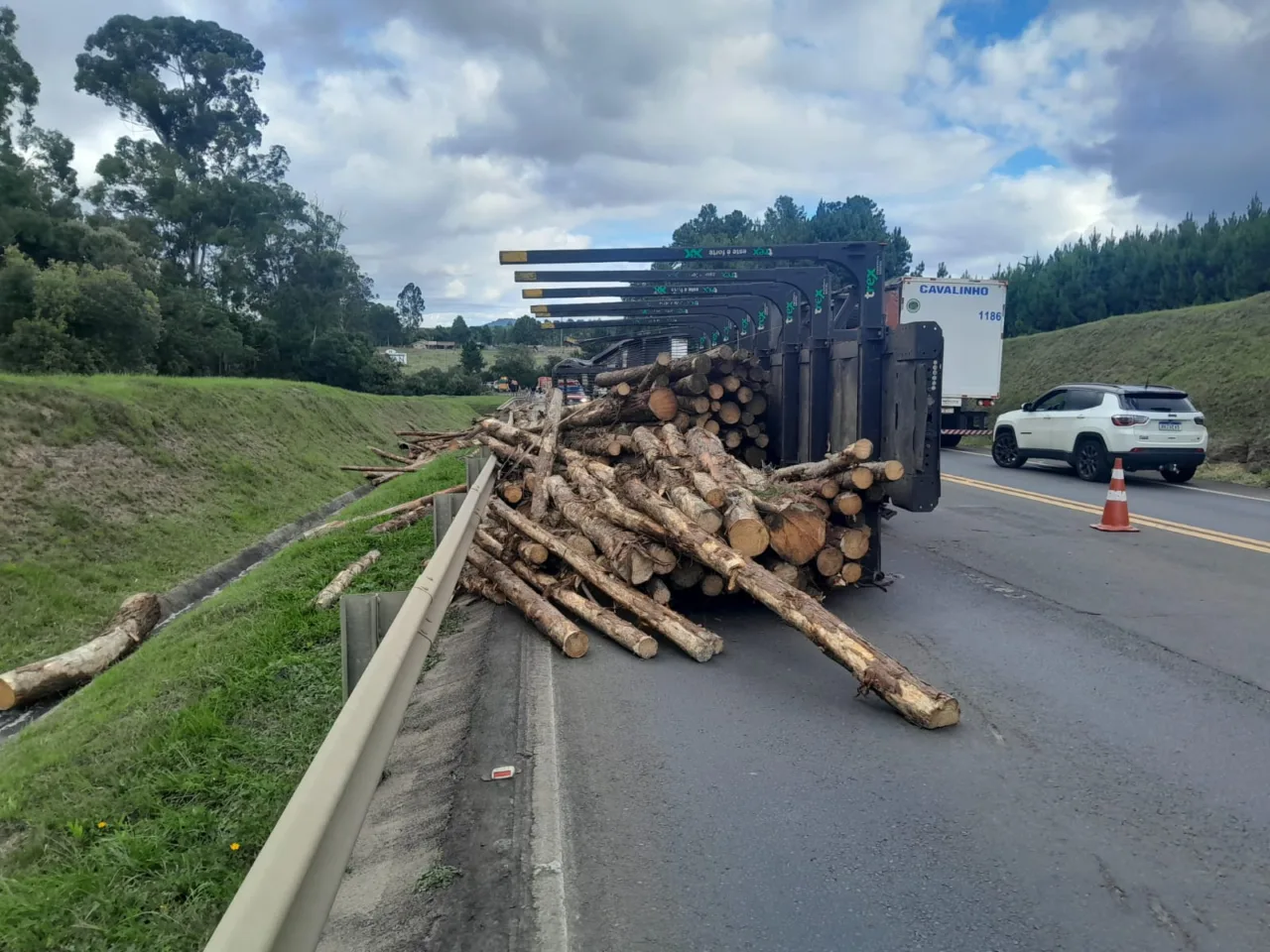 Segundo o Corpo de Bombeiros de Correia Pinto, o acidente ocorreu quando um caminhão colidiu com outro veículo do mesmo tipo. Um dos caminhões tombou sobre a pista, espalhando toras de madeira e bloqueando parcialmente a via, enquanto o outro saiu da pista e caiu na ribanceira.
