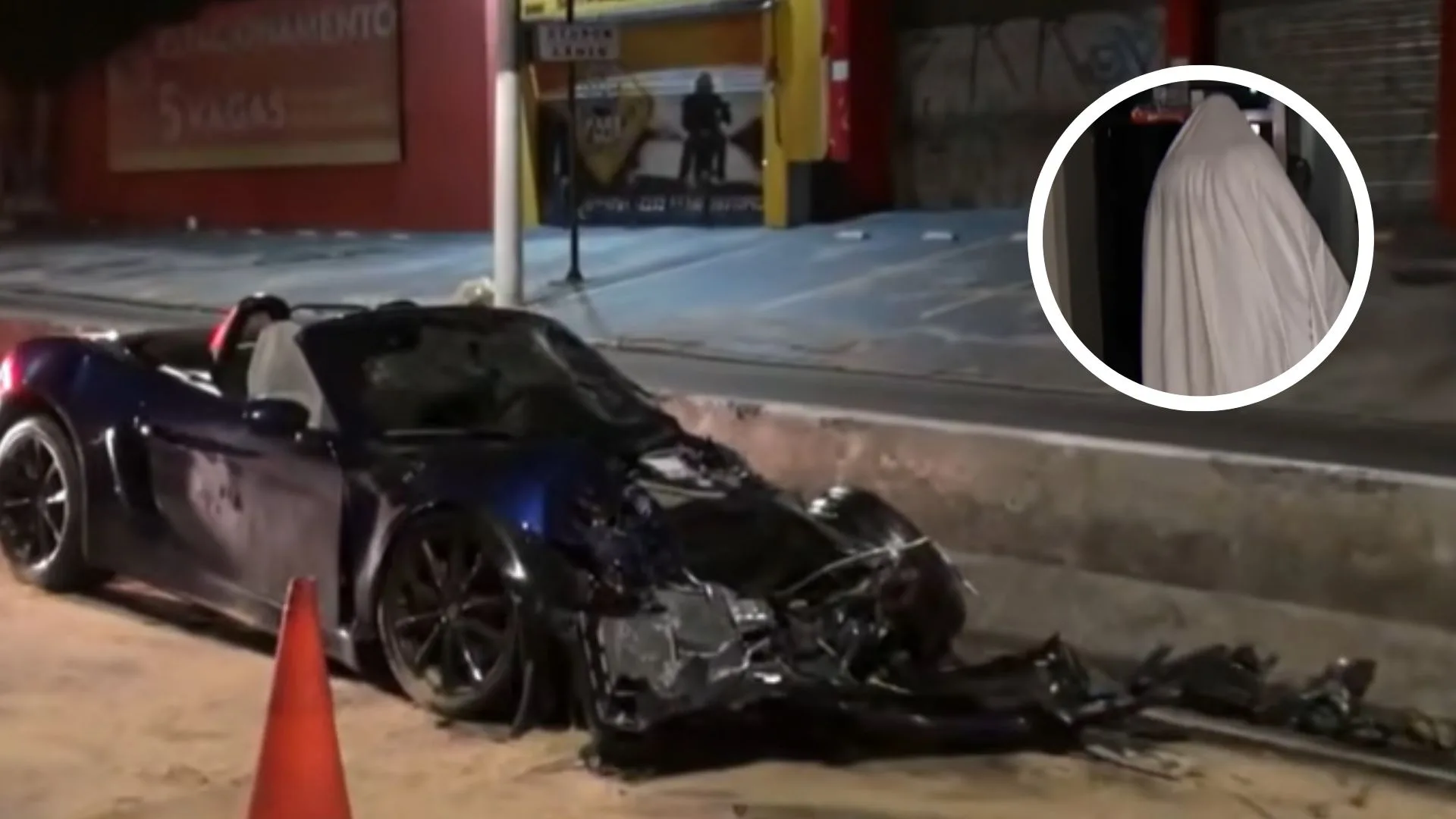 Segundo a Polícia Militar, imagens registradas por câmeras de monitoramento mostram o momento em que o Porsche praticamente “voa” antes de atingir o outro carro. Quatro pessoas ficaram feridas: o motorista e o passageiro do Porsche e duas pessoas do outro veículo.