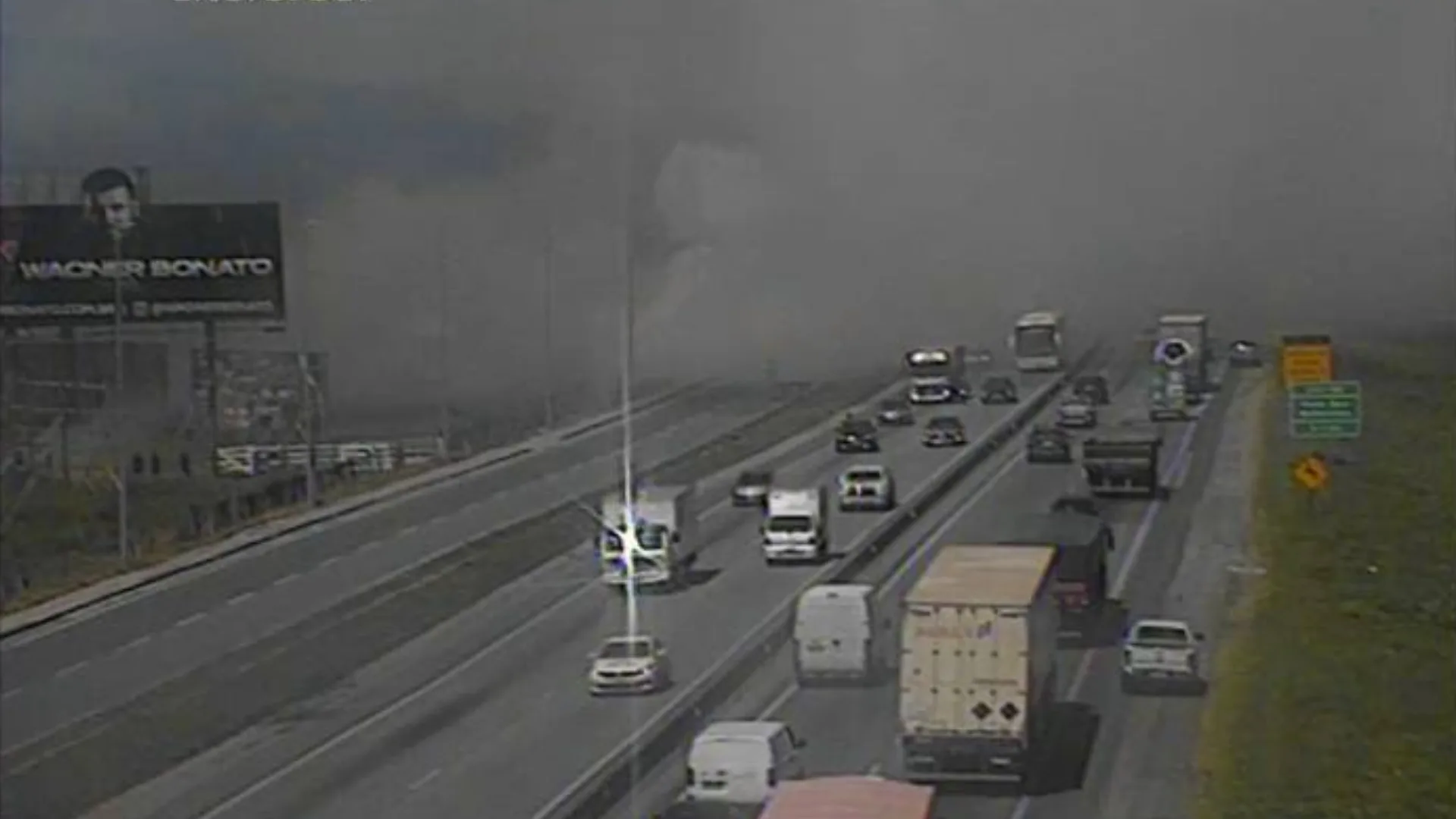 Por volta das 12h46, o Corpo de Bombeiros Militar informou que a fumaça que havia tomado a via já havia diminuído.