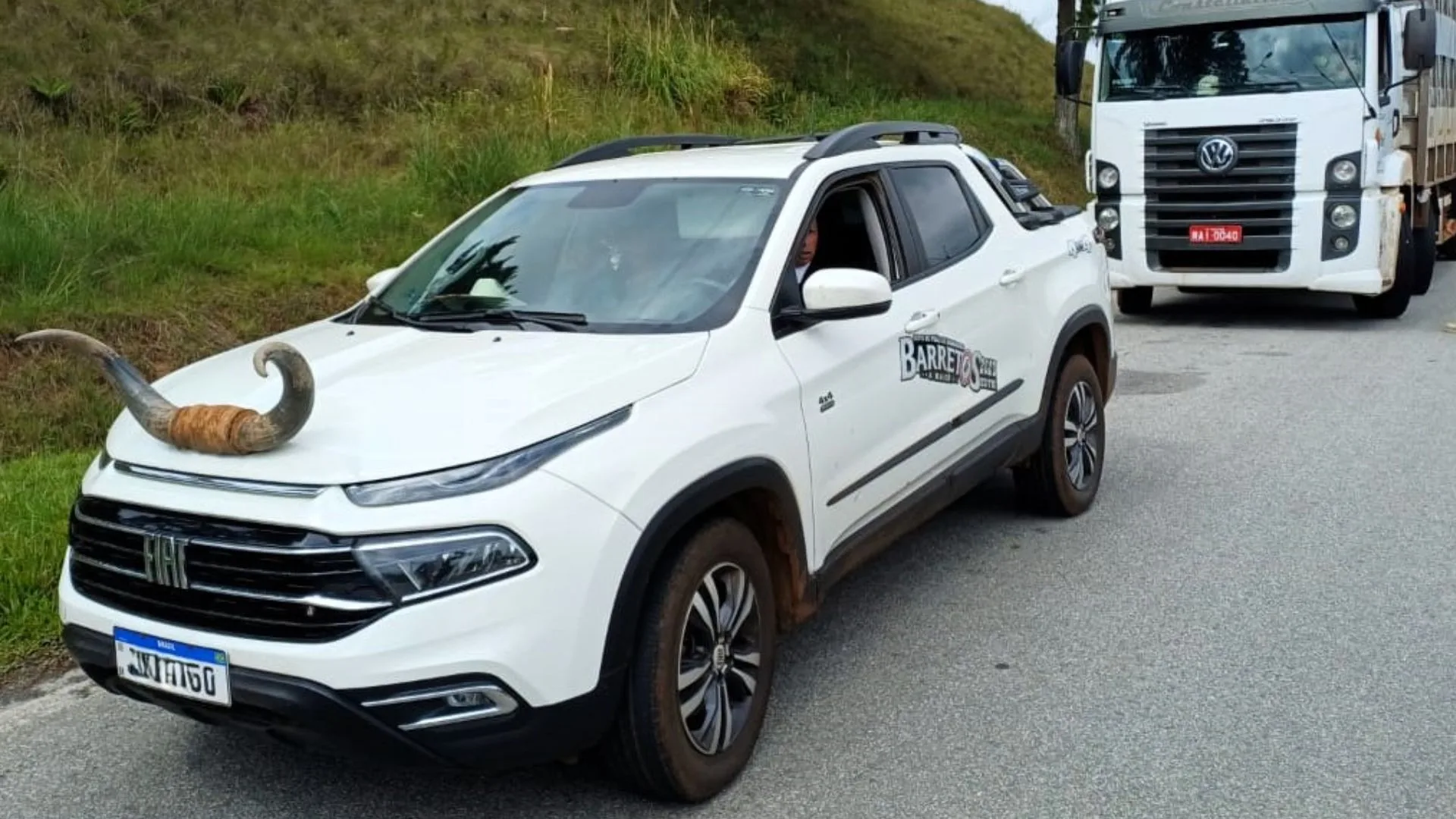 Picape com ‘chifre de boi’ no capô é flagrada em rodovia de SC