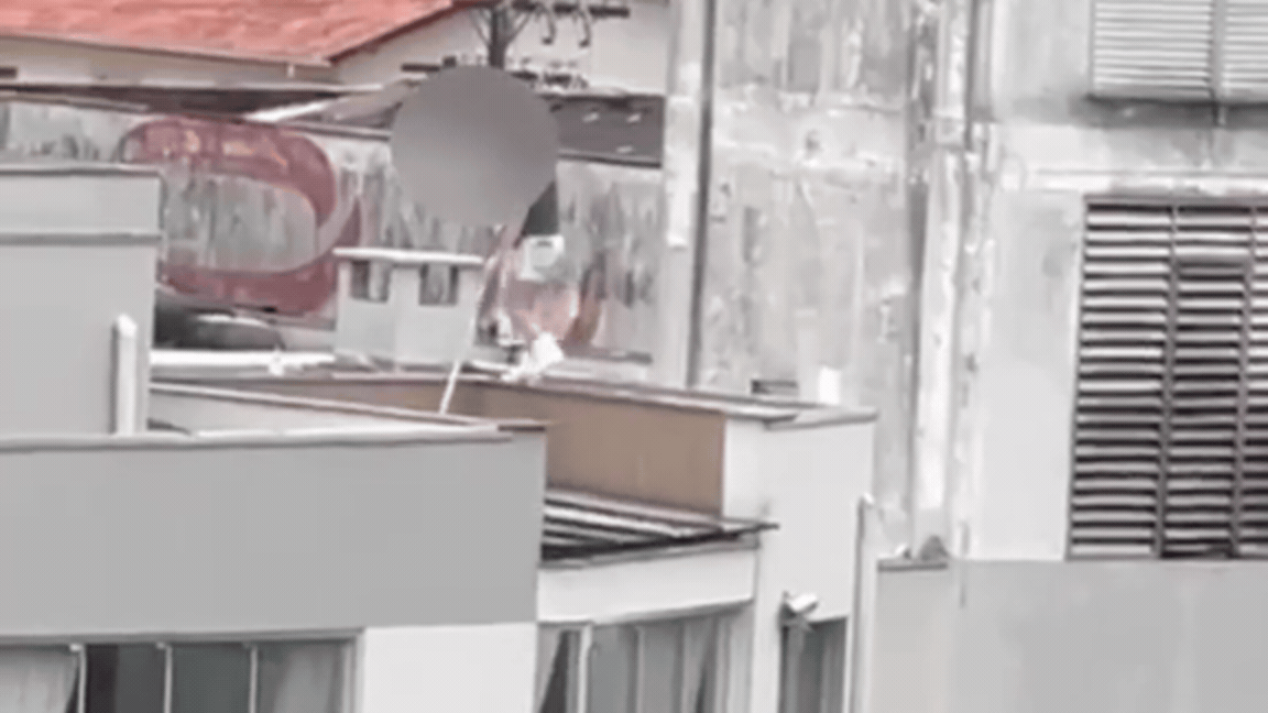 O registro foi feito por uma pessoa que estava em um prédio próximo. Nas imagens, é possível ver a mulher sobre a estrutura, exposta à altura e ao risco de queda, enquanto realiza a limpeza da cobertura.