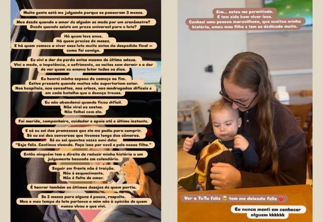“Seguir em frente não é traição. É também honrar os últimos desejos de quem partiu“, completou o influenciador, após dizer que não pretende esconder o novo relacionamento. Até o momento, o nome da nova namorada não foi revelado.