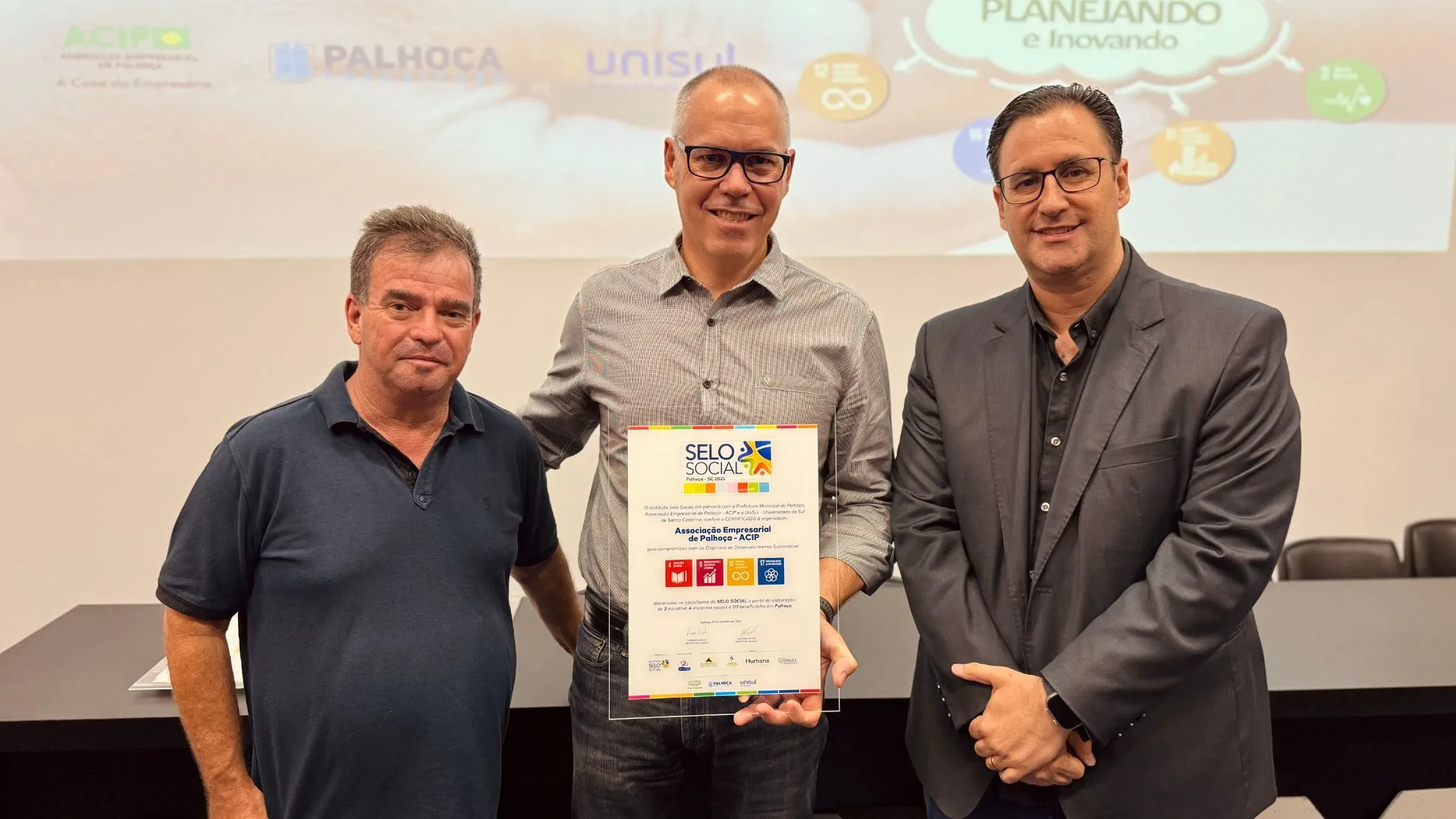 A Associação Empresarial de Palhoça (ACIP) está entre as 26 organizações reconhecidas pelo Instituto Selo Social por desenvolver projetos de impacto alinhados aos Objetivos de Desenvolvimento Sustentável (ODS) da ONU. A entidade conquistou quatro certificações, resultado de iniciativas voltadas à educação, sustentabilidade, fortalecimento institucional e desenvolvimento econômico no município.