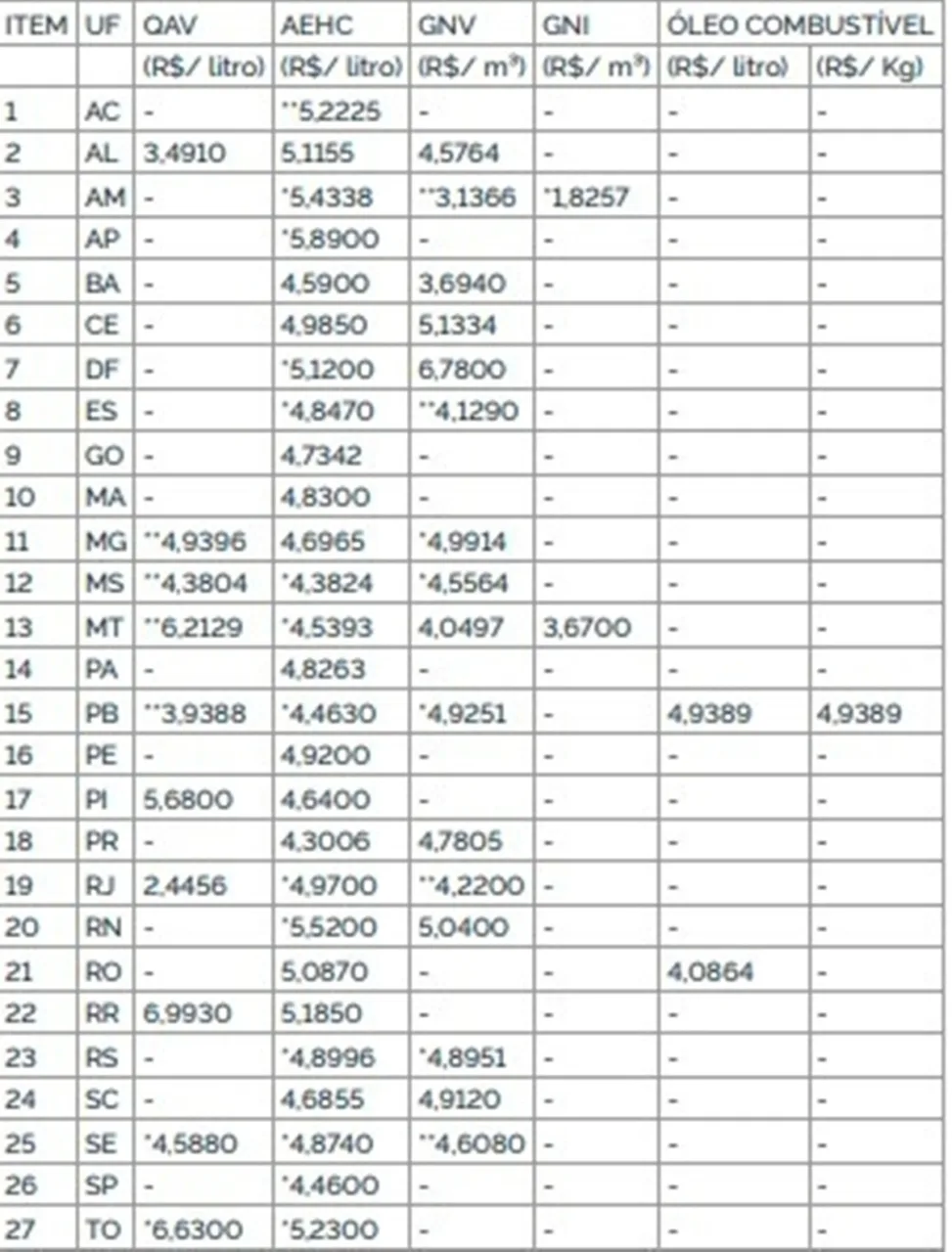 Os números divulgados consideram variações regionais de mercado e incluem dados de todos os estados e do Distrito Federal. A atualização faz parte do monitoramento periódico do governo sobre os preços dos combustíveis e da padronização da base de tributação aplicada no país.