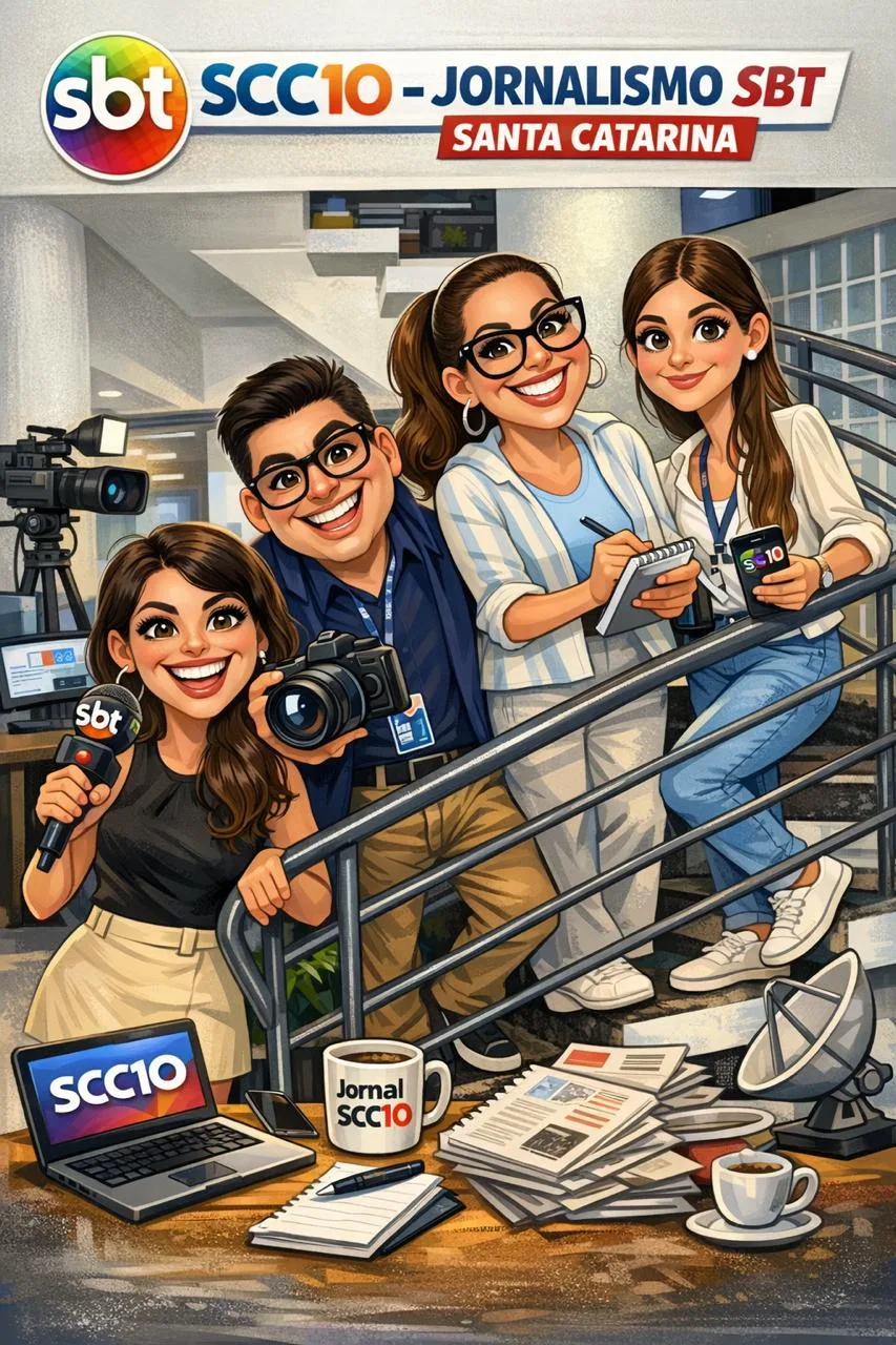 Veja como ficou a caricatura com IA com alguns jornalistas do SCC10