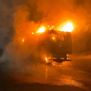 - Caminhão é consumido pelo fogo após motorista perceber fumaça no motor em SC