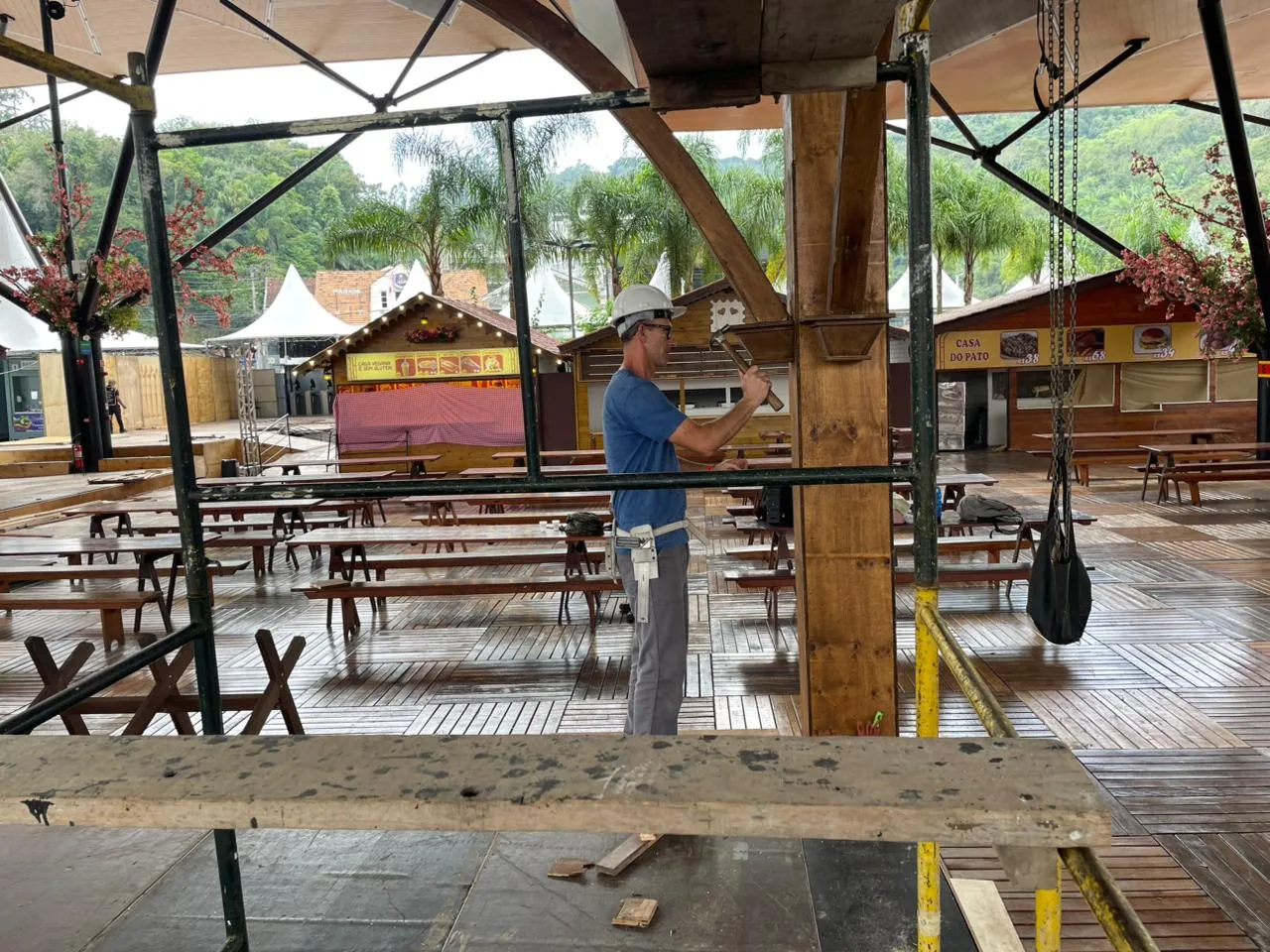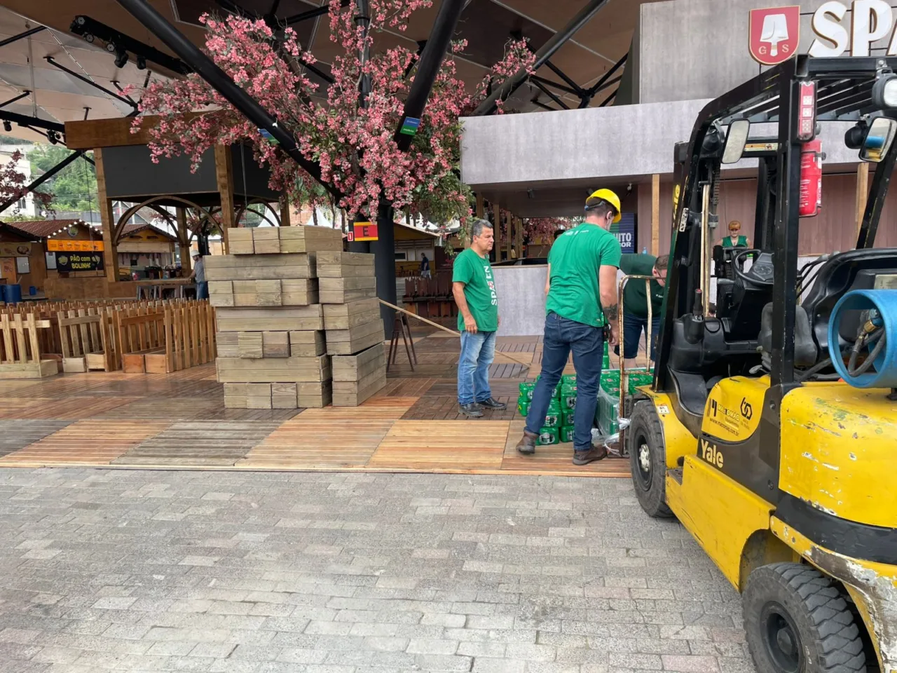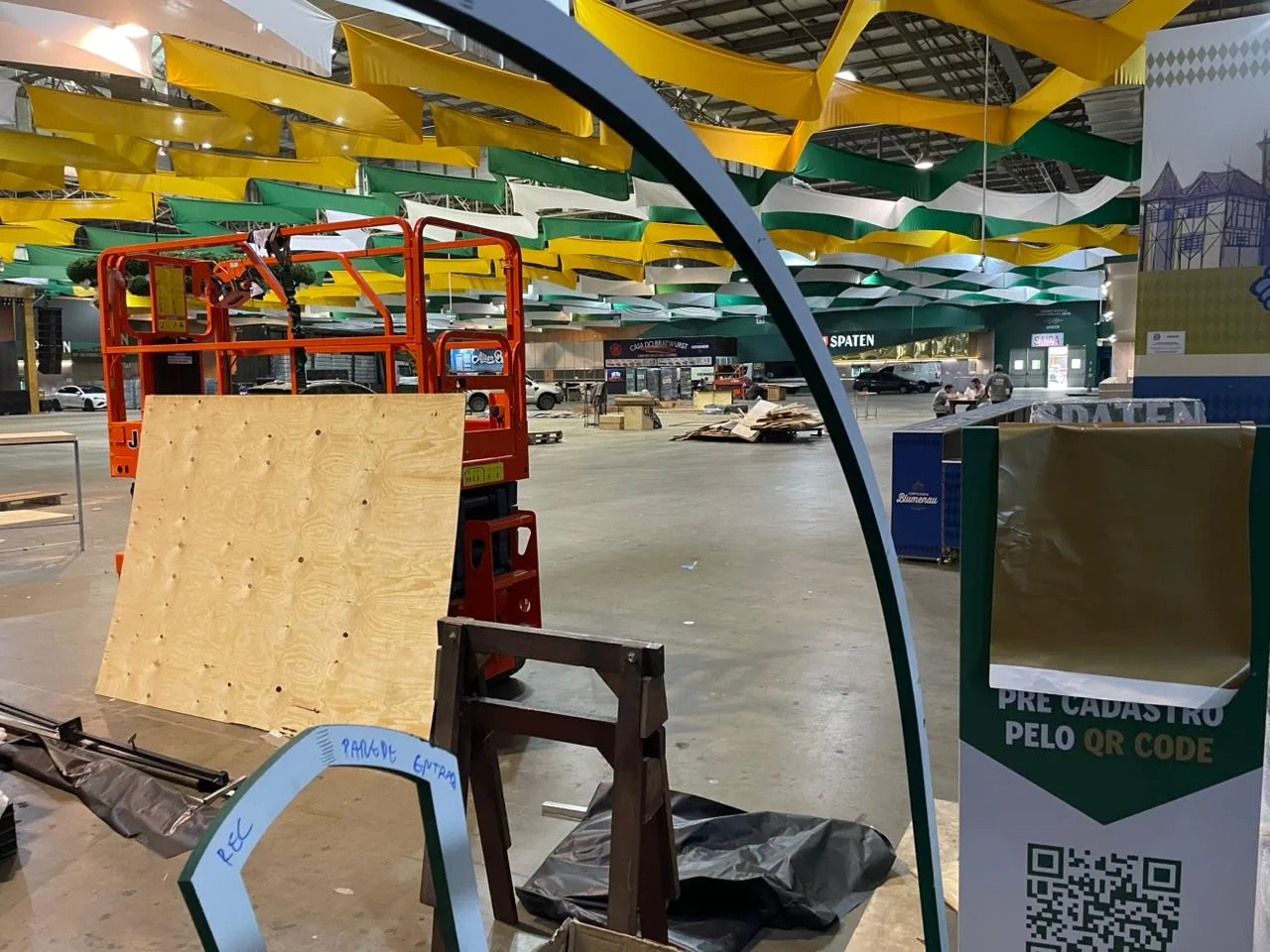 Ao todo, cerca de 600 profissionais estão envolvidos na montagem da estrutura, que abrange os pavilhões da Vila Germânica e o ginásio Galegão. O trabalho inclui desde os detalhes de ambientação temática até a instalação de sistemas elétricos, iluminação e sonorização, além da preparação das áreas gastronômicas e dos espaços de convivência.