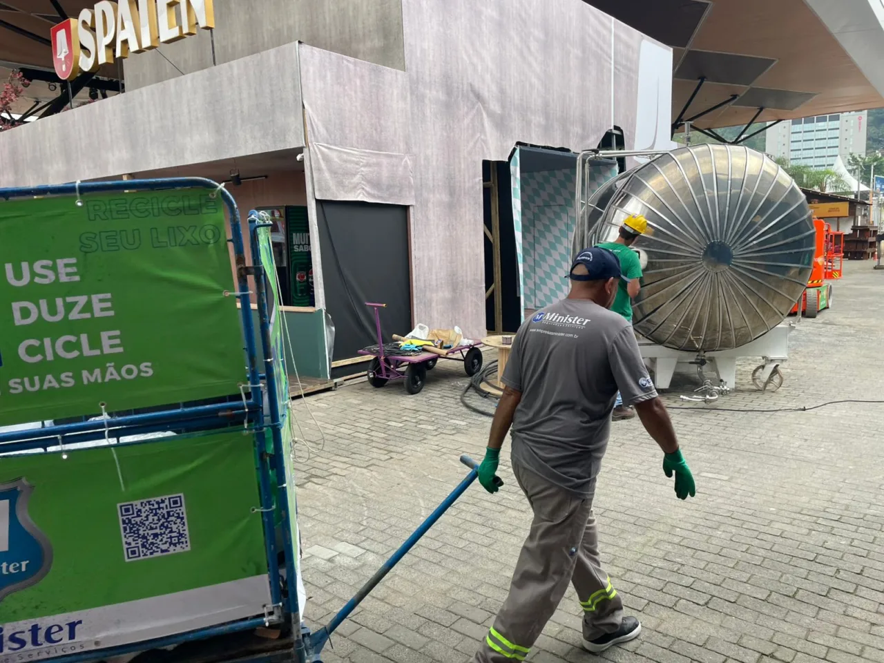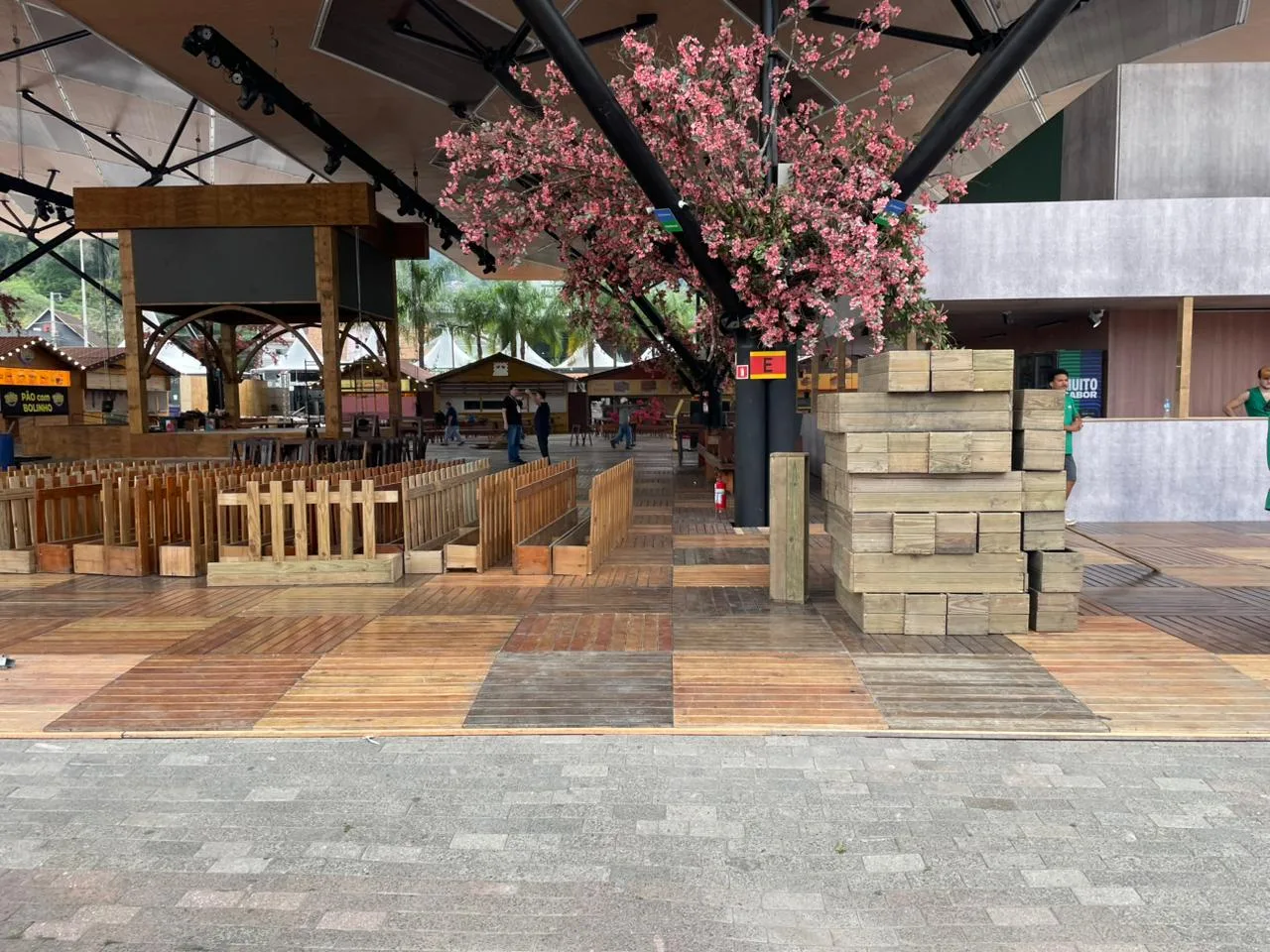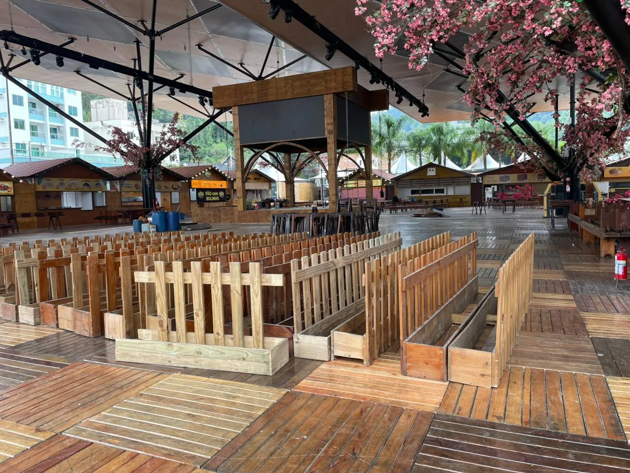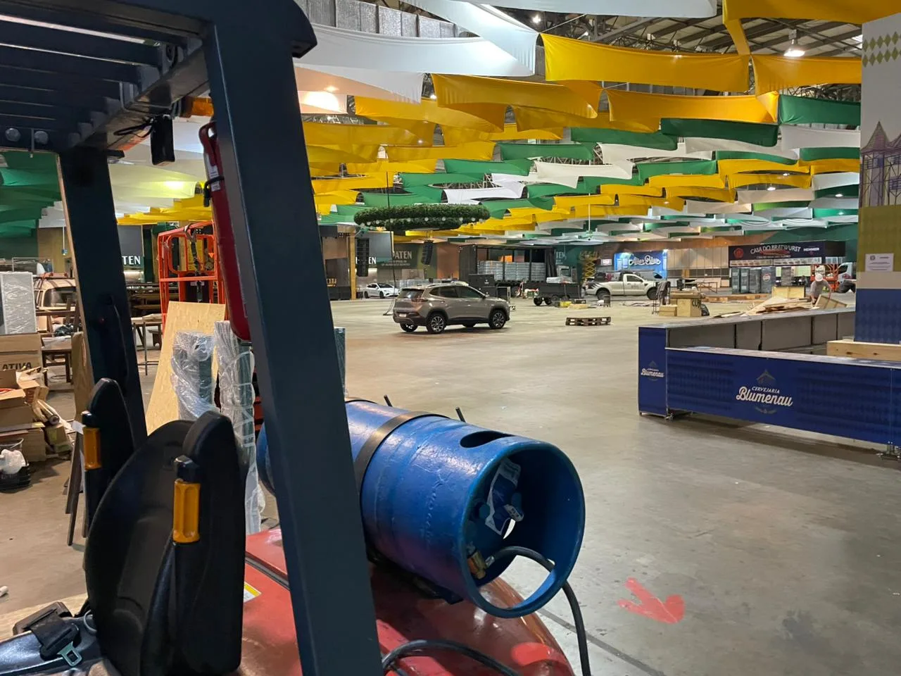 Ao todo, cerca de 600 profissionais estão envolvidos na montagem da estrutura, que abrange os pavilhões da Vila Germânica e o ginásio Galegão. O trabalho inclui desde os detalhes de ambientação temática até a instalação de sistemas elétricos, iluminação e sonorização, além da preparação das áreas gastronômicas e dos espaços de convivência.