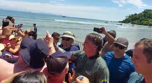 No retorno, por volta das 11h, o presidente voltou a ser recebido por apoiadores que o cercaram, tiraram fotos, e causaram aglomeração na praia. Jair Bolsonaro segue hospedado no Forte Marechal Luz, em São Francisco do Sul, até terça-feira (16).