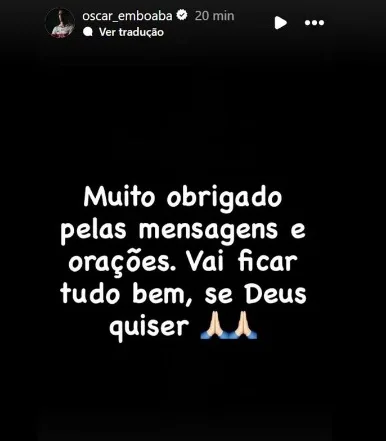 “Muito obrigado pelas mensagens e orações. Vai ficar tudo bem, se Deus quiser.”