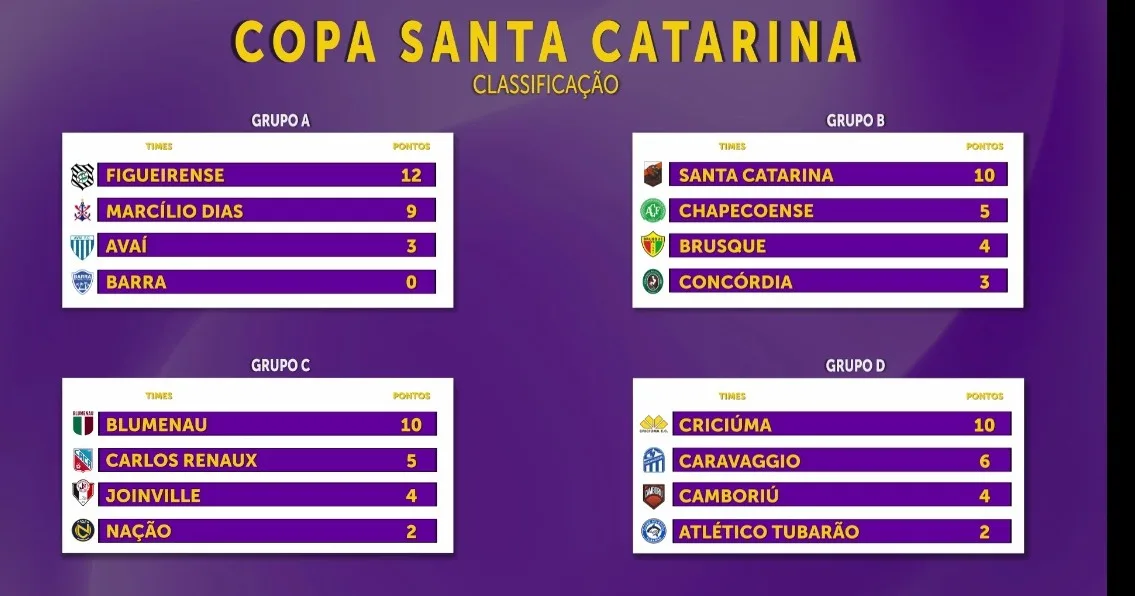 - Grupo A: Figueirense já classificado; Marcílio Dias bem encaminhado.