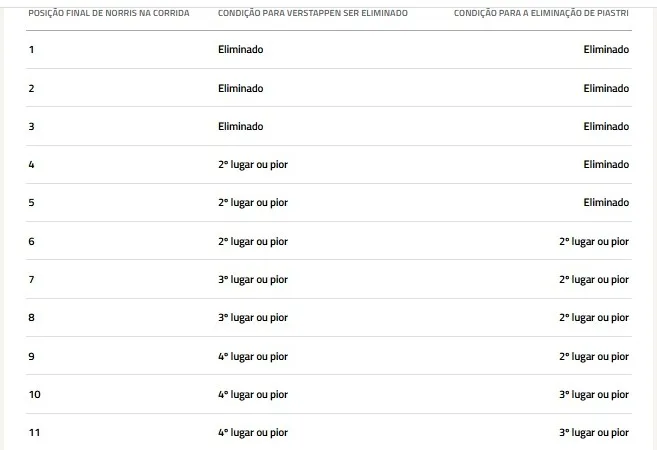 Sem Norris no pódio, com Verstappen em primeiro lugar e Piastri em segundo, o piloto da Red Bull conseguiu diminuir a diferença de pontos entre ele e o líder. Além de ter passado Piastri na classificação, assumindo o segundo lugar.