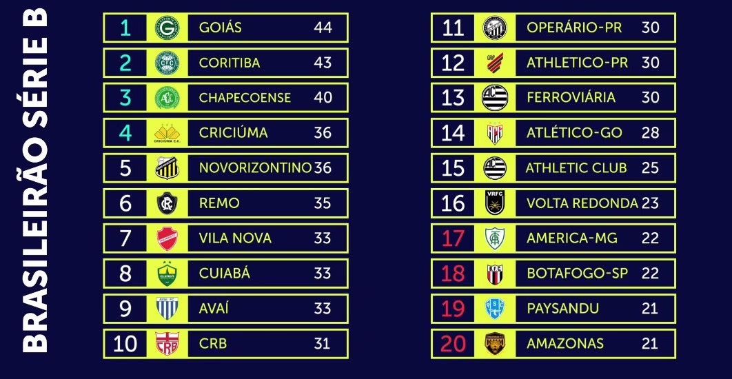 Hoje ainda jogam Guarani x Confiança e CSA x Ponte Preta. As partidas que podem influenciar diretamente na luta do Figueirense pela classificação. Duas vagas para o mata-mata seguem em aberto. Já estão rebaixados Retrô e Tombense.