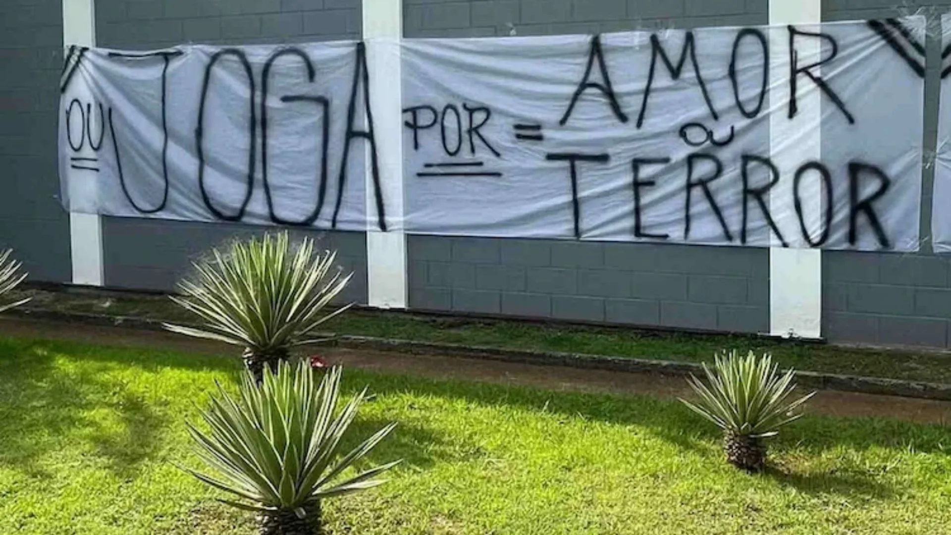 Faixas com críticas foram espalhadas durante a madrugada, com mensagens direcionadas aos jogadores. O ato ocorreu um dia após uma nova cobrança direta aos atletas na entrada do centro de treinamento.