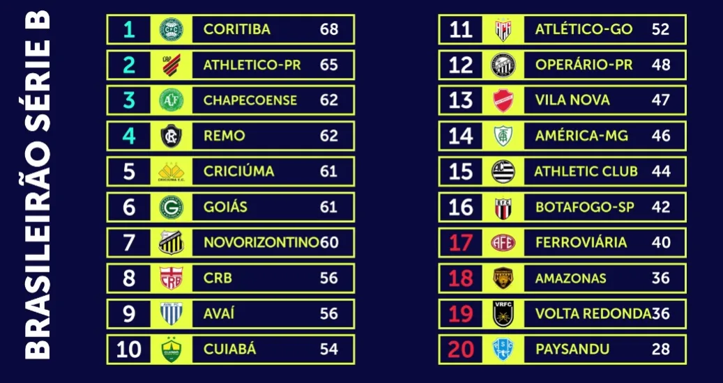 Na parte de cima, o Flamengo segue líder e agora abre quatro pontos de vantagem sobre o Palmeiras. O Rubro-Negro venceu o Bragantino por 3×0, enquanto o Verdão empatou com o Fluminense.