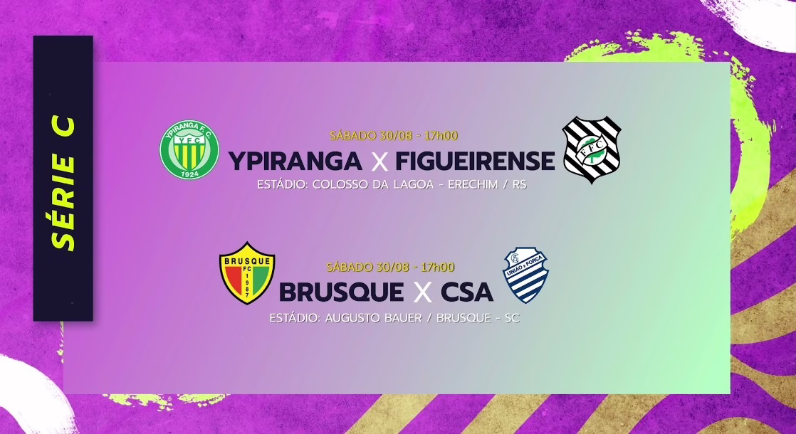 Brusque x CSA também no sábado, às 17h: o Quadricolor é o 7º colocado, com 25 pontos, e precisa apenas de uma vitória simples para se classificar. Em caso de empate, terá que secar Floresta, Botafogo-PB e Confiança.