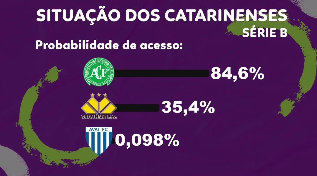 Faltam quatro rodadas para o fim do Campeonato Brasileiro da Série B, e as equipes catarinenses seguem na disputa pelo acesso. Confira as probabilidades: