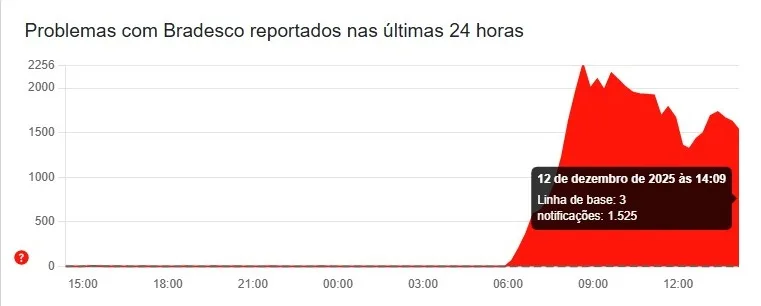 Nesta sexta-feira (12) os usuários registraram um alto número de falhas no acesso ao site e ao aplicativo do Bradesco. O site Downdetector, que monitora as oscilações e registra a situação, emitiu o alerta desde as primeiras horas da manhã.