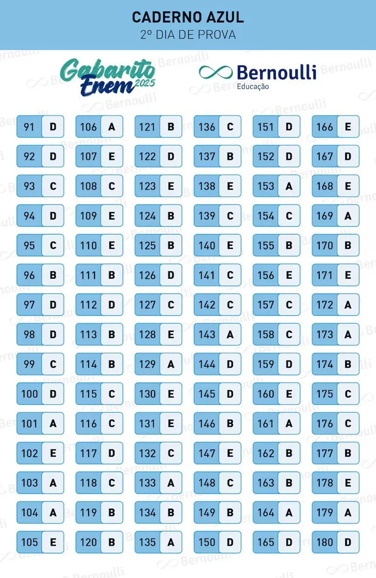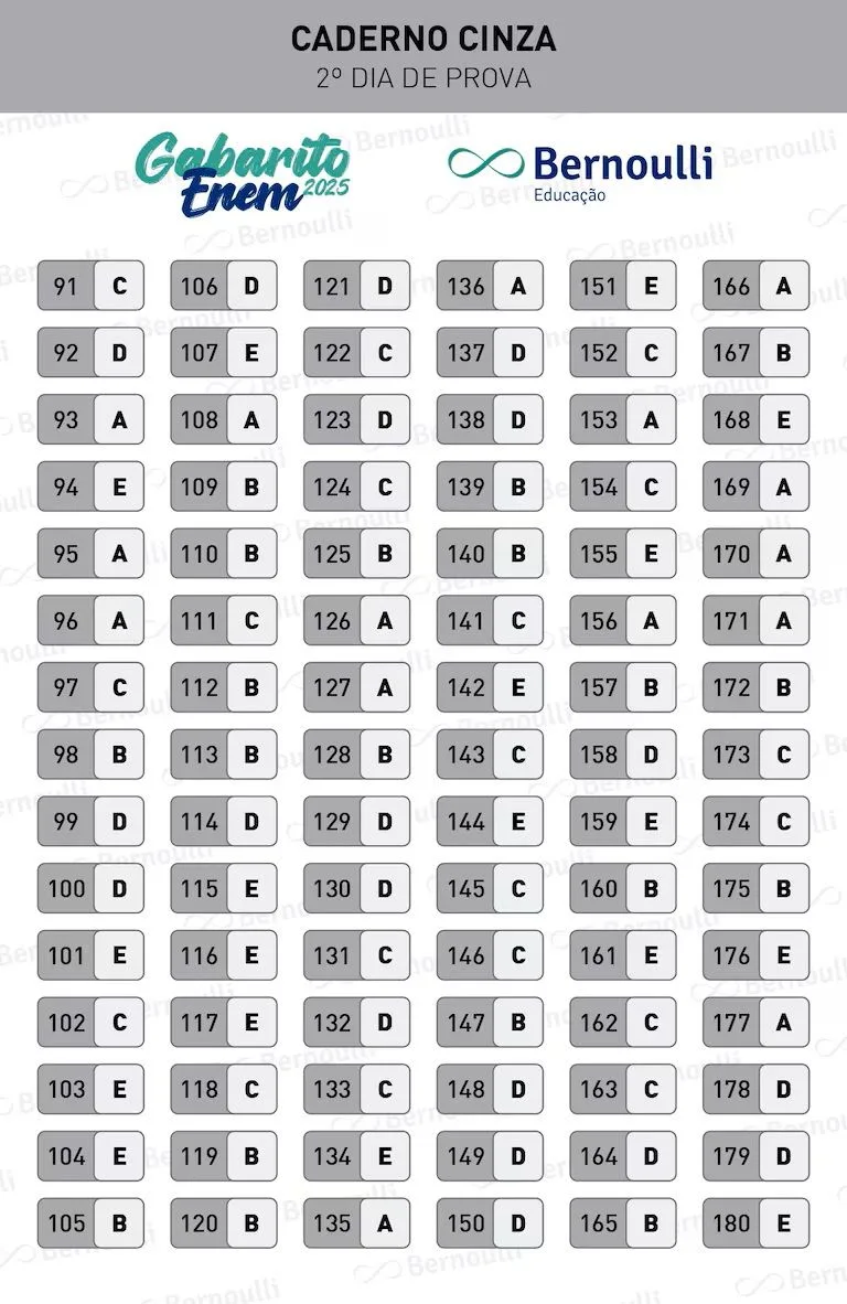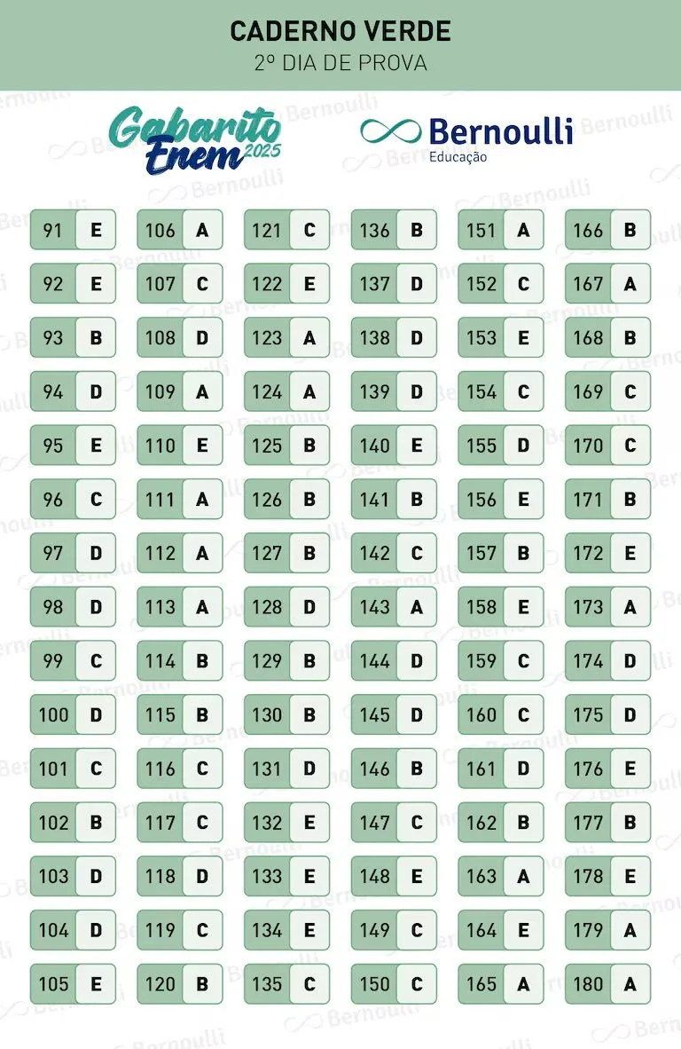 Apesar do resultado sair apenas nesta quinta (20), a equipe de professores do Bernoulli Educação, fizeram uma correção das provas do segundo dia e divulgaram os gabaritos extraoficiais, confira: