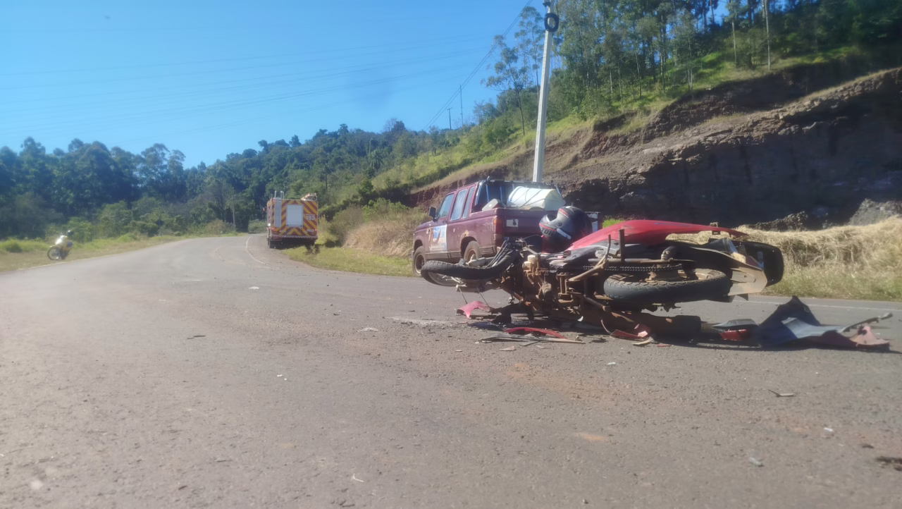 Um motociclista morreu após colidir contra um caminhão de ração na Linha Boa Vista, interior de Pinhalzinho, no Oeste de Santa Catarina. O acidente ocorreu na manhã desta quarta-feira (30), e o homem morreu durante o transporte ao hospital.