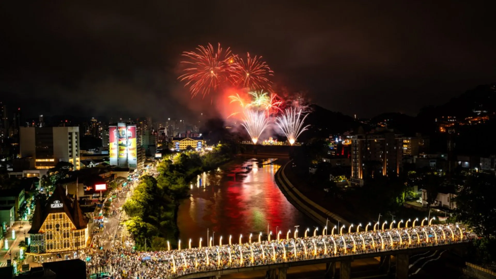 Já o destaque do Réveillon em Blumenau, show da Turma do Pagode, é previsto para começar por volta de 23h30 e se estende até perto da meia-noite, quando será pausado para a queima de fogos. A programação deve continuar até às 02h.