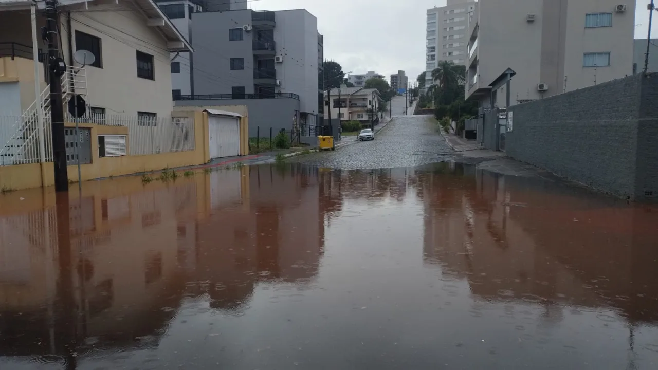 Chuva forte provoca desabamento de forro em escola e alaga ruas no Oeste de SC; veja imagens