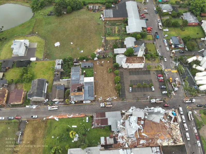 A Defesa Civil do Rio Grande do Sul confirmou que o fenômeno que atingiu Flores da Cunha na segunda-feira (8) foi um tornado. A identificação ocorreu após análise detalhada das imagens coletadas no local pelas equipes do Departamento de Gestão de Desastres, que trabalham na área desde o dia do evento.