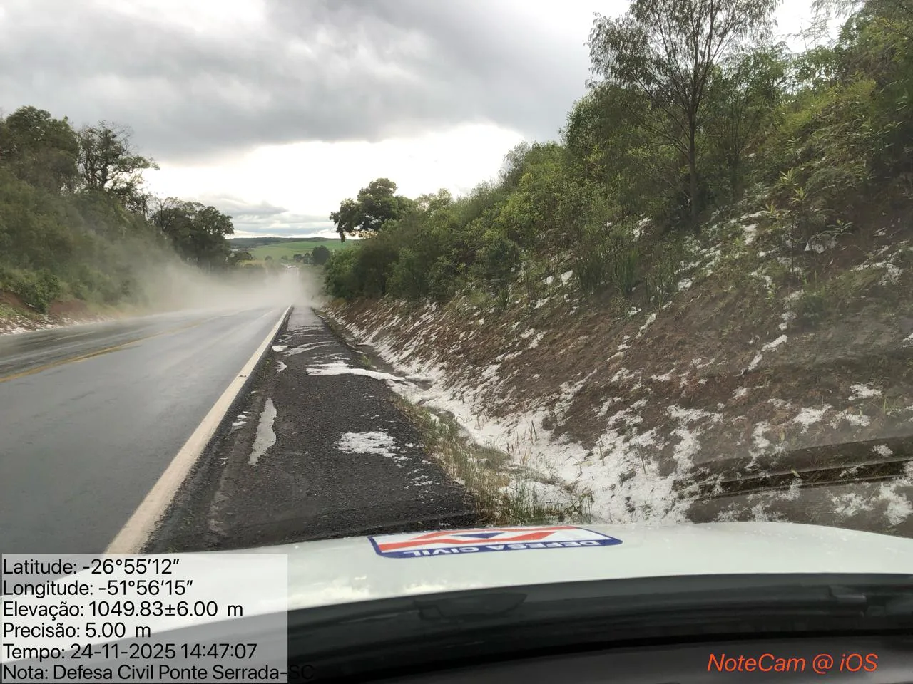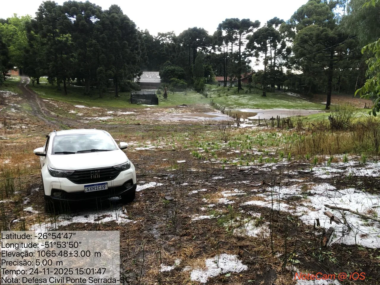 Defesa Civil confirma queda de granizo em Passos Maia, Coronel Martins, Ponte Serrada, Ipuaçu e São Domingos, sem danos urbanos registrados