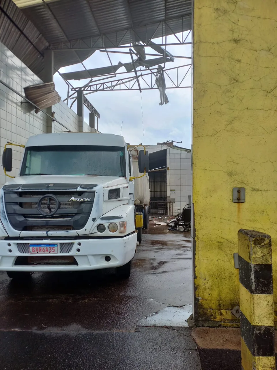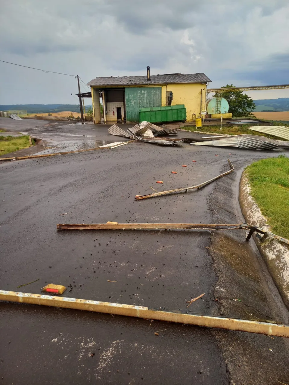 Rajadas de vento destelham parte de empresa no Oeste de SC; confira imagens