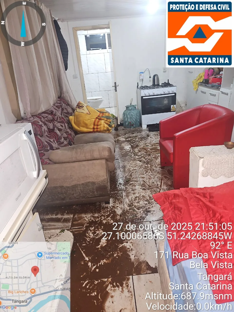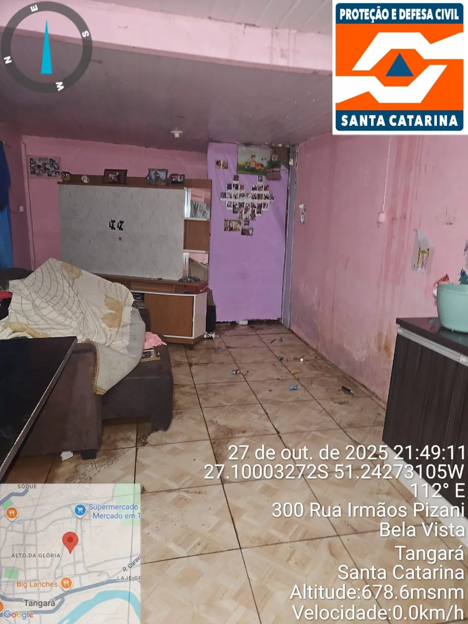 Na noite desta segunda-feira (27), um forte temporal com raios, granizo, rajadas de vento e alagamentos atingiu Tangará e outros municípios da região do Meio-Oeste de Santa Catarina. Tangará, que possui 8.143 habitantes segundo o censo de 2022, está entre os mais afetados, com registros de alagamentos em algumas áreas.