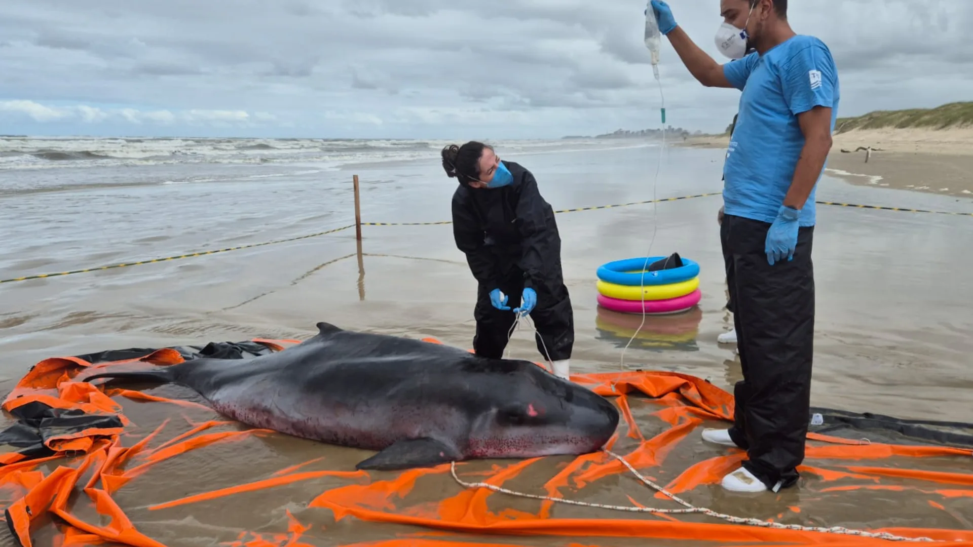 Os guarda-vidas registraram o encalhe e acionaram a equipe por meio do Projeto de Monitoramento de Praias da Bacia de Pelotas (PMP-BS), mantido pela TGS. A área foi isolada e o animal recebeu atendimento veterinário para ser estabilizado.
