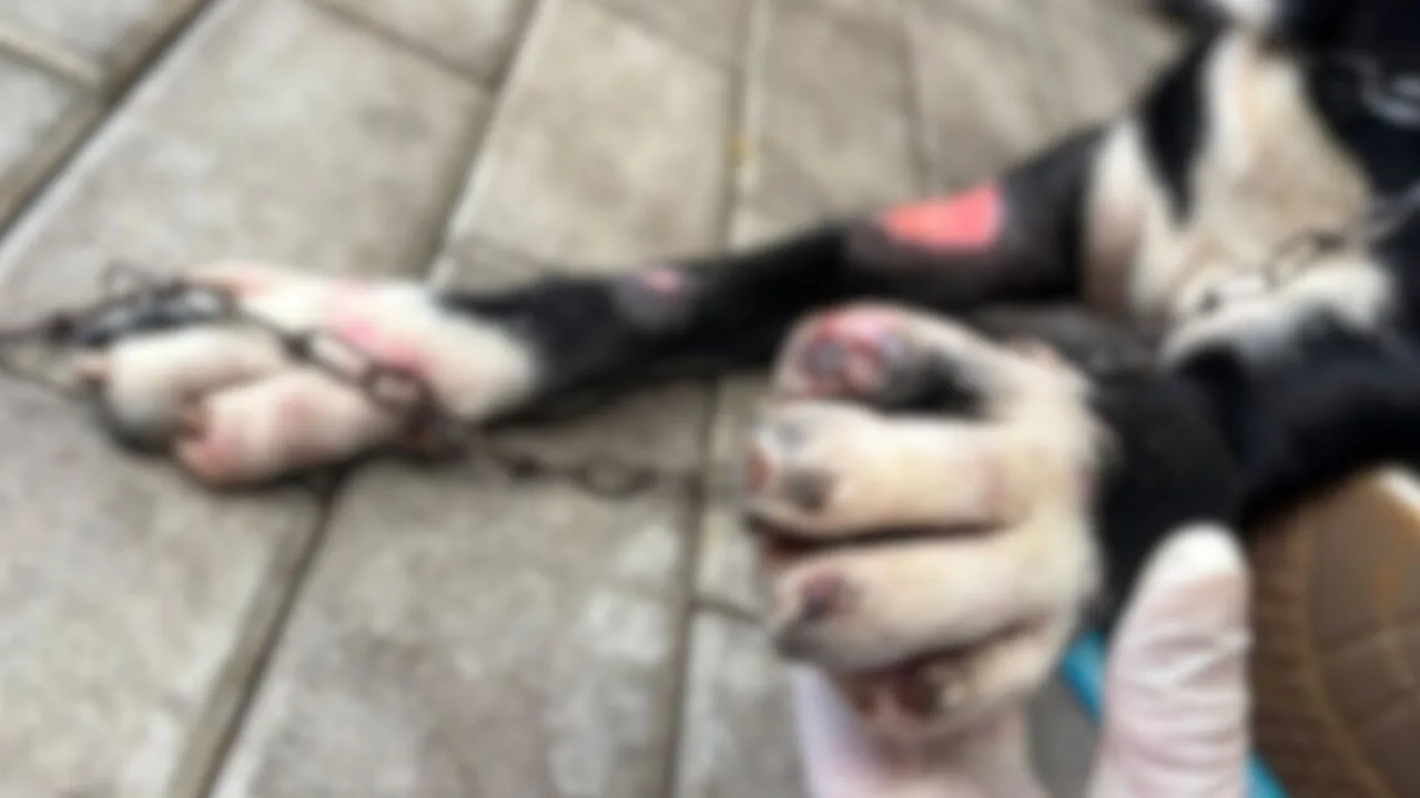 Após a investigação, a polícia localizou o homem em sua residência. No local, o animal foi encontrado com feridas abertas em todo o corpo, unhas arrancadas e partes musculares expostas. O tutor admitiu que não havia levado o cachorro a um veterinário durante os 16 dias desde o ocorrido, aplicando apenas óleo de girassol como tratamento.