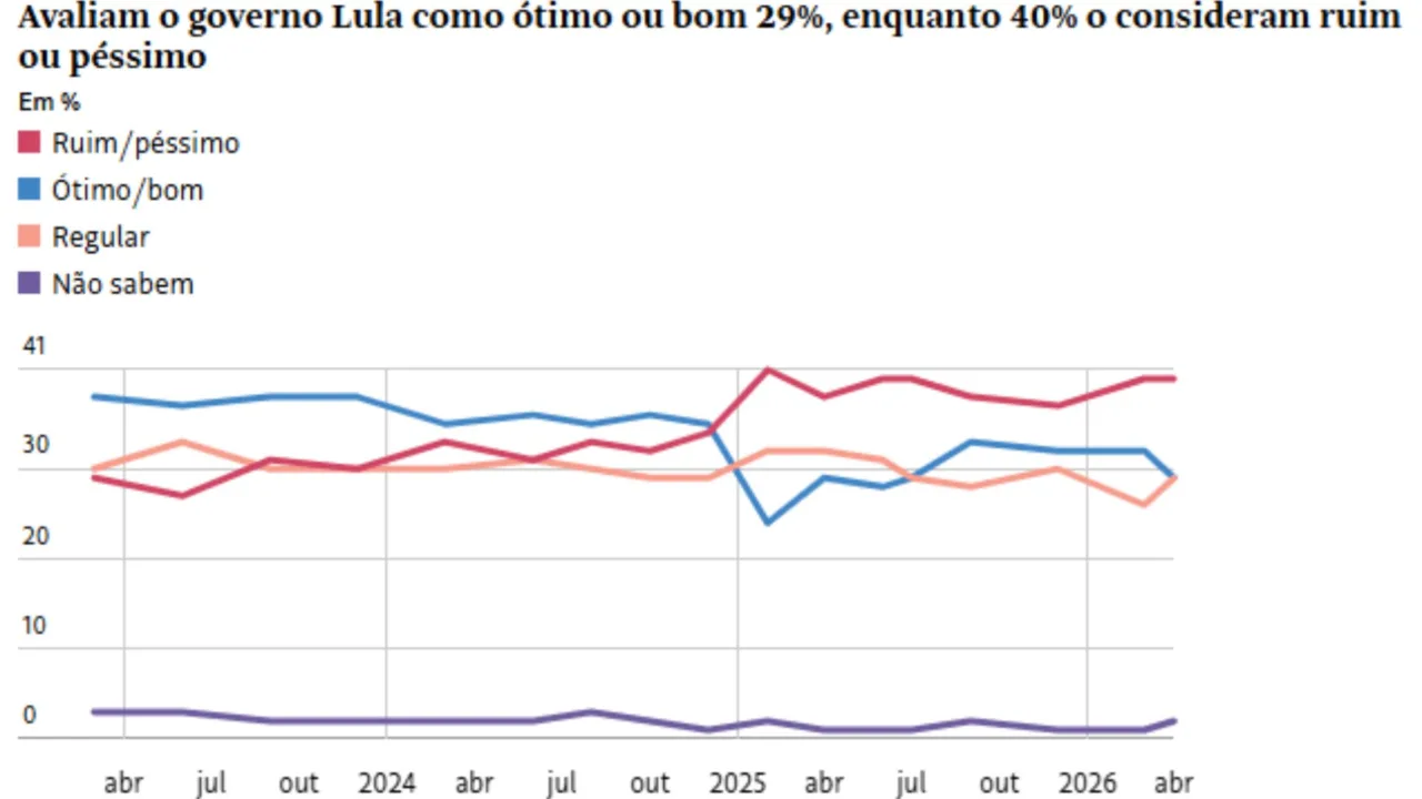 Levantamento aponta aumento da reprovação e queda na aprovação de Lula, indicando tendência de desgaste na popularidade do governo