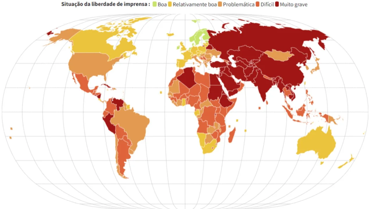 A própria RSF afirma que a liberdade de imprensa global atingiu o pior nível dos últimos 25 anos, com aumento da criminalização do jornalismo e restrições legais em diversos países.