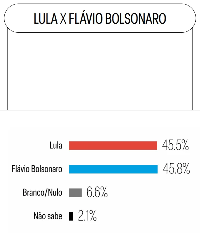 Meio/Ideia: Lula e Flávio Bolsonaro empatam em cenário de segundo turno