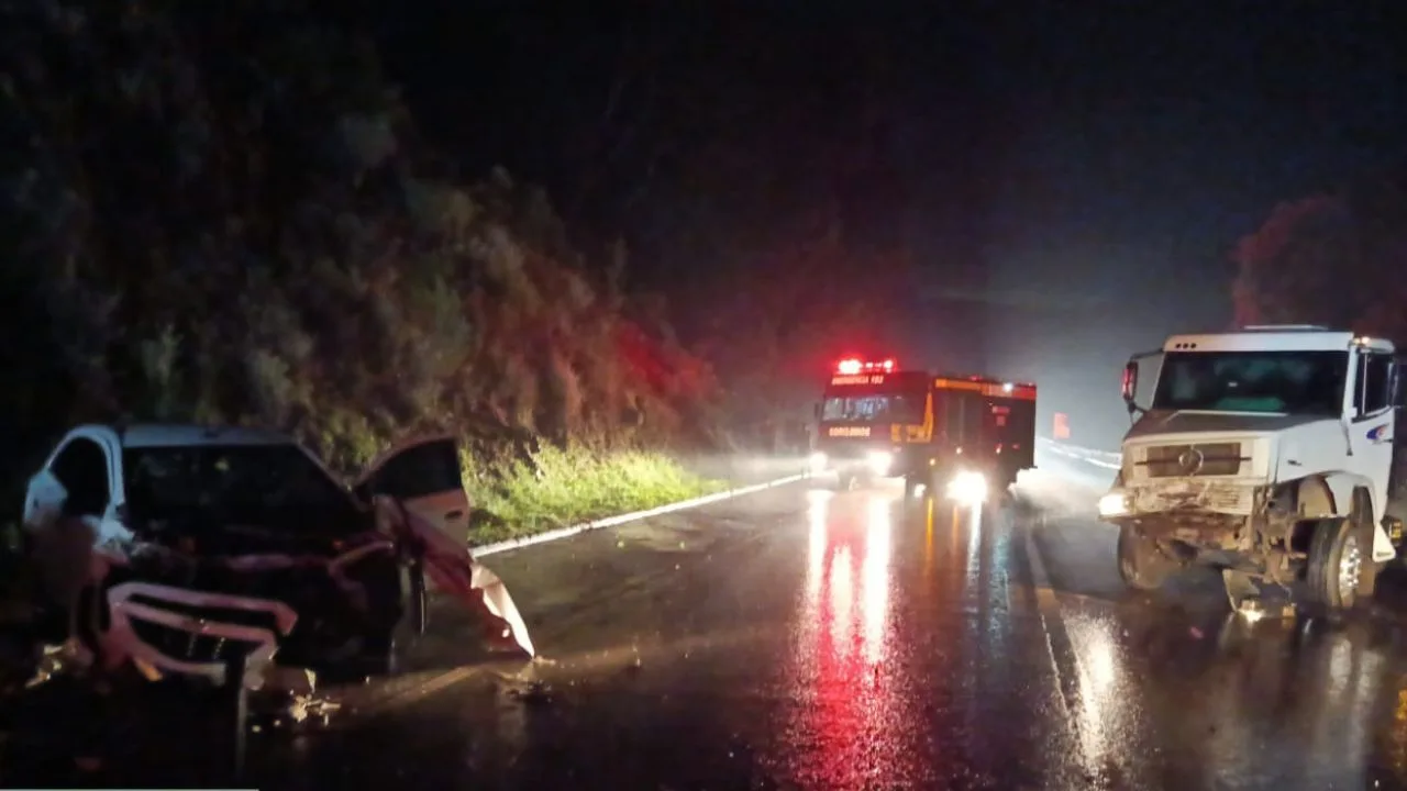 Colisão frontal entre carro e caminhão mobiliza socorro; atendimento às vítimas