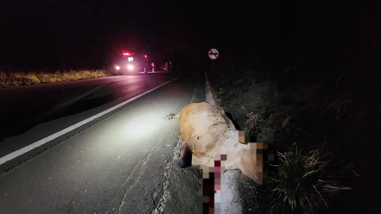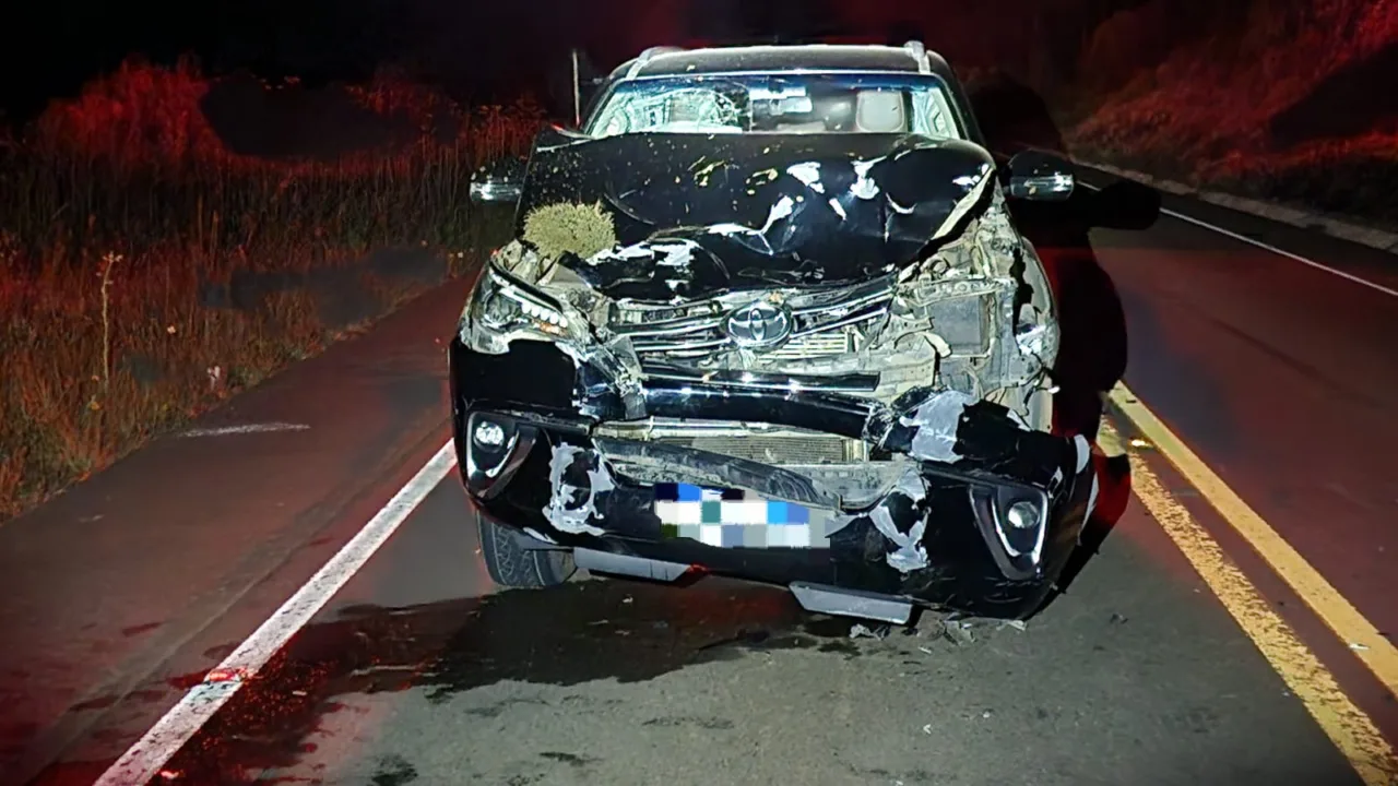 De acordo com a Polícia Militar Rodoviária, o acidente envolveu uma Toyota Hilux SW4, de cor preta, com placas de Cerro Negro do Sul/SC, conduzida por um homem de 61 anos. O veículo seguia no sentido decrescente da rodovia quando, ao trafegar por um trecho em reta, acabou atropelando uma vaca que entrou de forma inesperada na pista.