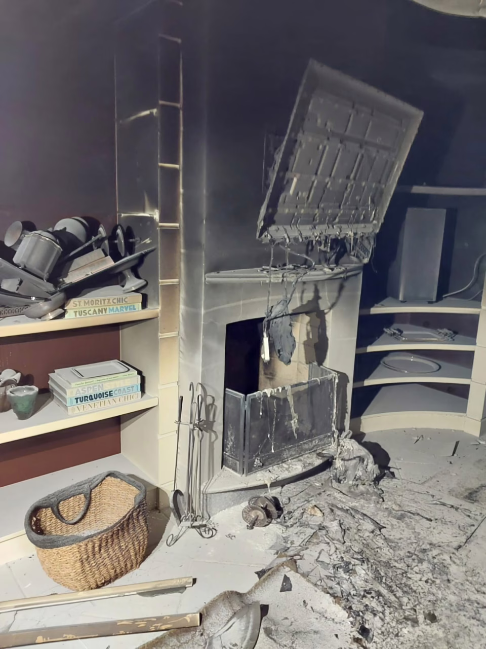 O incêndio se concentrou na sala de TV, onde havia uma lareira acesa. O fogo consumiu completamente um sofá, uma televisão e um quadro. Como as portas dos demais cômodos estavam abertas, a fuligem se espalhou e acabou danificando todo o apartamento.