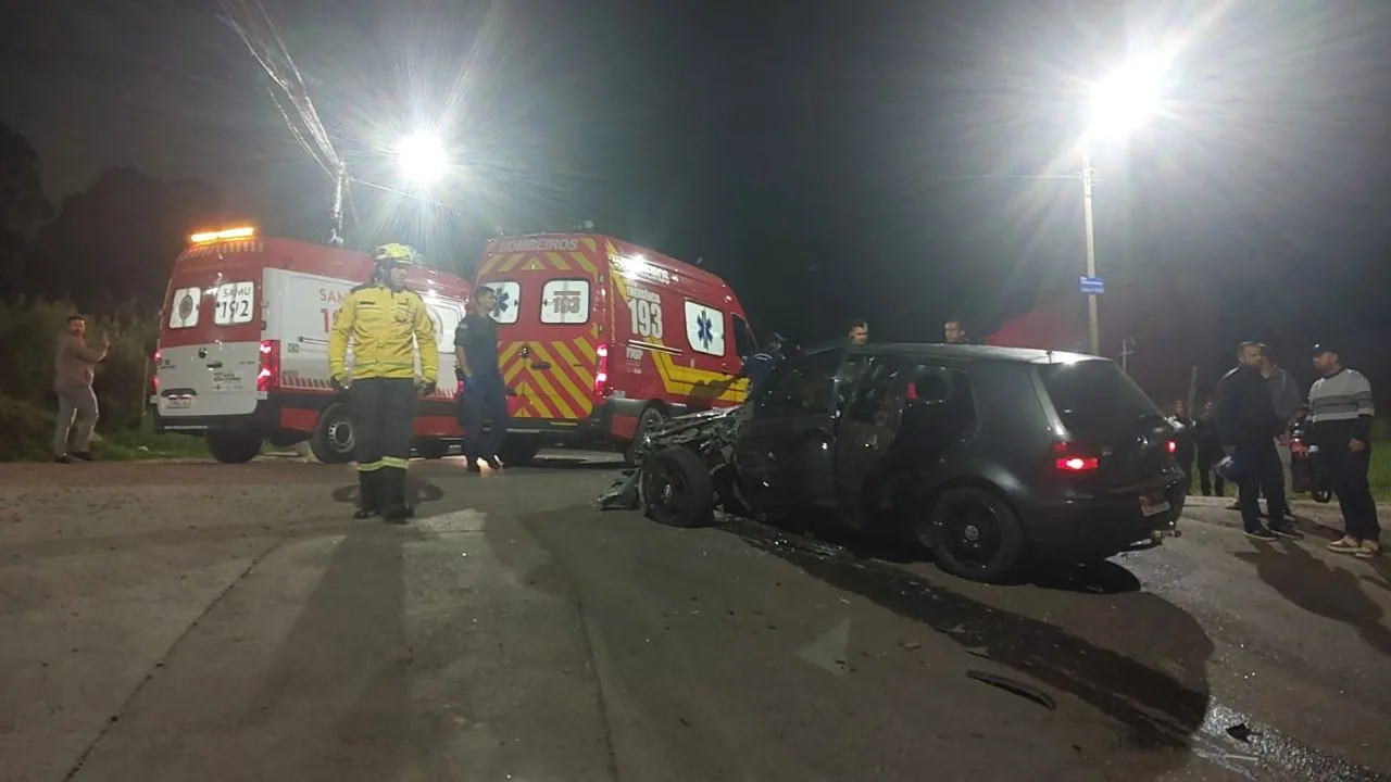 Um sinistro de trânsito mobilizou as equipes do Corpo de Bombeiros Militar e do SAMU na noite de sábado (11), por volta das 22h45, na Rua Frei Nicodemos, bairro Santa Catarina. A ocorrência envolveu uma colisão seguida de capotamento entre um Fiat Punto e um VW Golf.