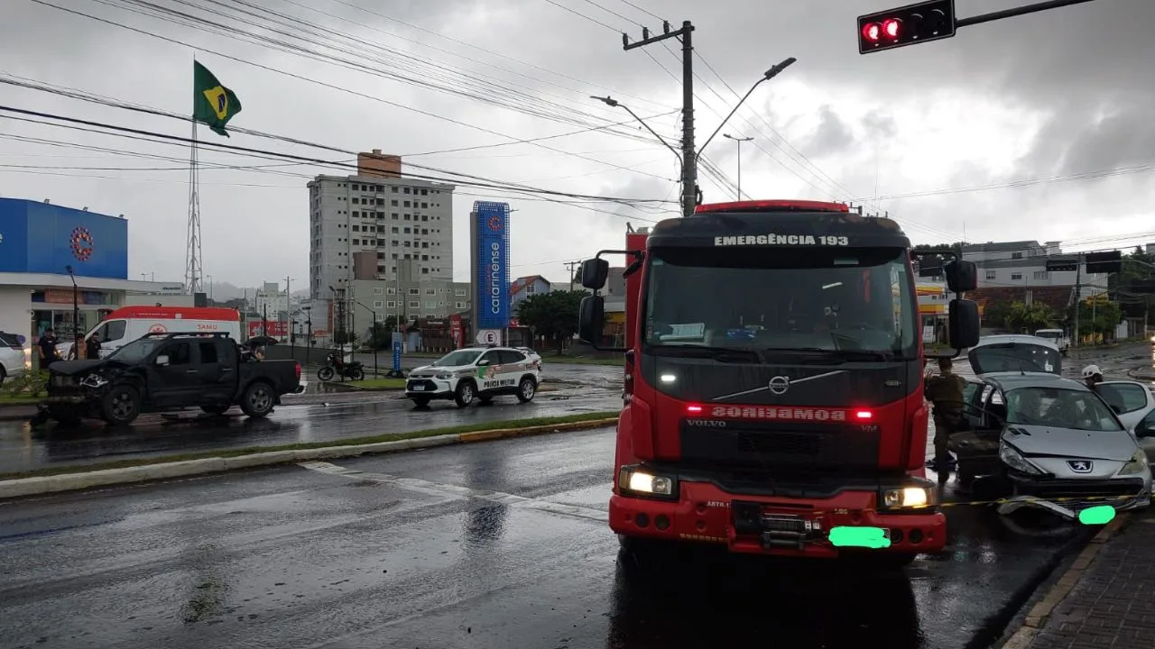 Colisão entre caminhonete e carro deixa quatro feridos em cruzamento de Lages