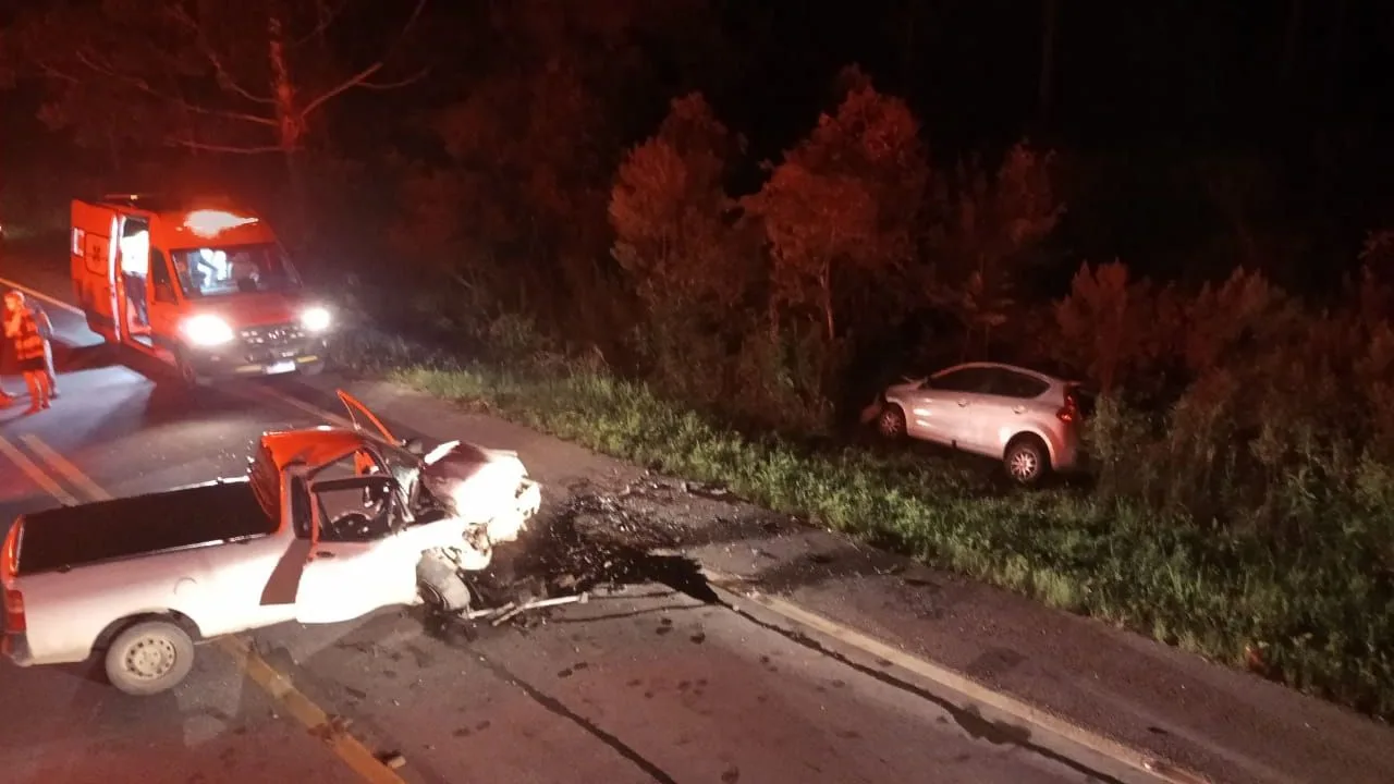 Uma colisão envolvendo dois veículos mobilizou equipes de socorro de diferentes municípios na noite desta quinta-feira (8), no km 115 da BR-282, em Bom Retiro. O acidente, registrado por volta das 19h51, envolveu um Ford Courier, com placas de Bom Retiro, e um Fiat Palio, com placas da Argentina.