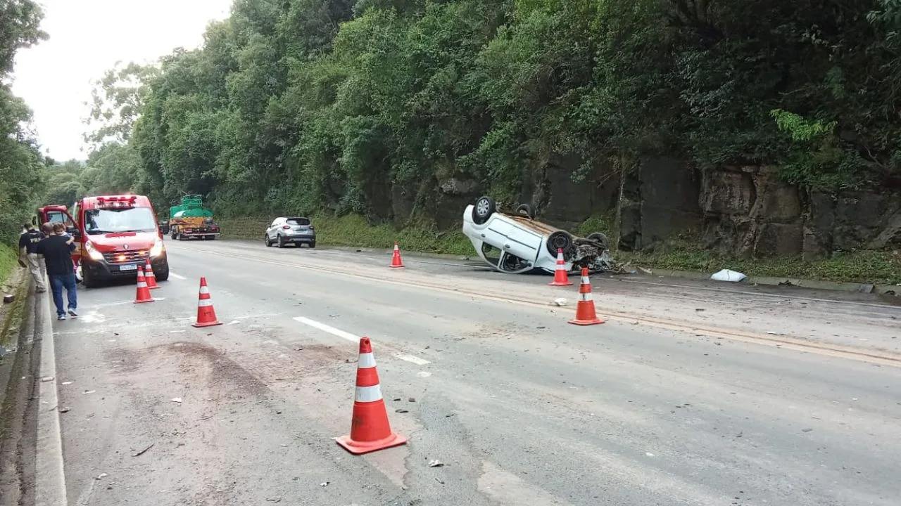 O final da tarde de Natal (25) foi marcado por um grave acidente de trânsito no KM 210 da BR-116. A ocorrência, que envolveu uma saída de pista seguida de capotamento e colisão frontal, mobilizou guarnições do Corpo de Bombeiros de Correia Pinto e equipes da concessionária Arteris Planalto Sul por volta das 17h34.