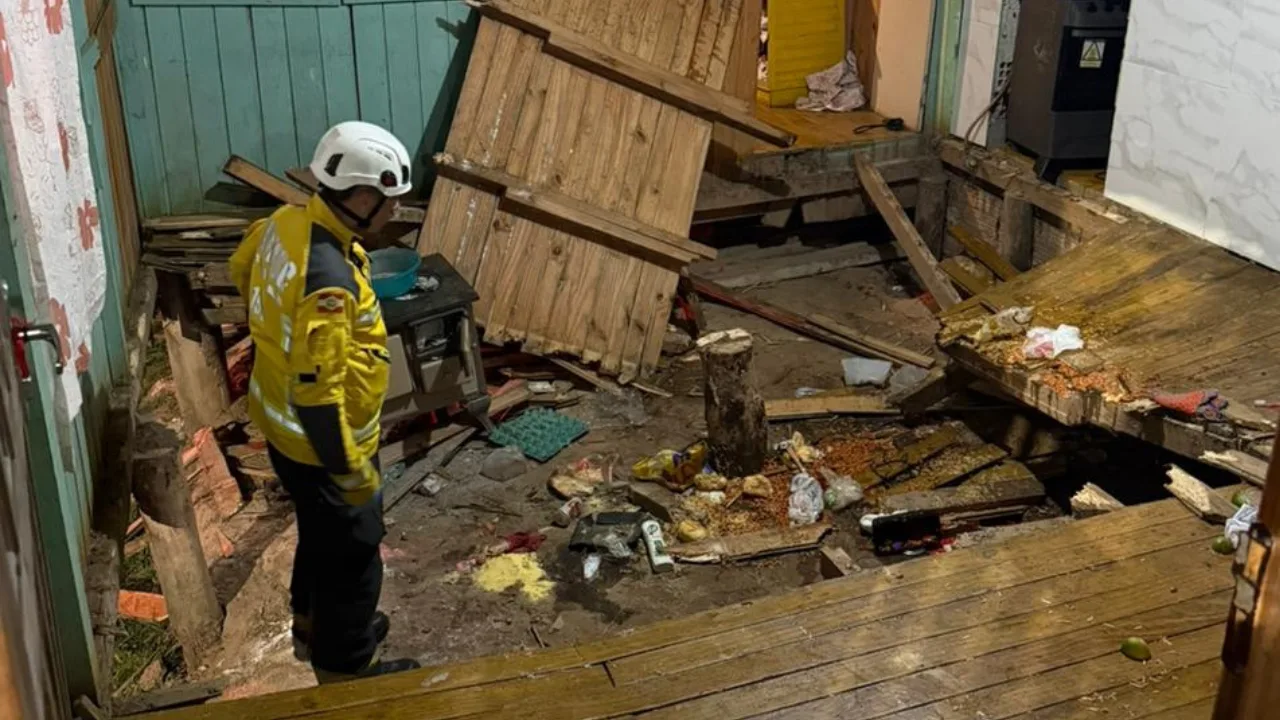 A residência possui área aproximada de 100 metros quadrados e é construída quase integralmente em madeira, com exceção do banheiro. O cômodo atingido pelo desabamento tem cerca de 20 metros quadrados.