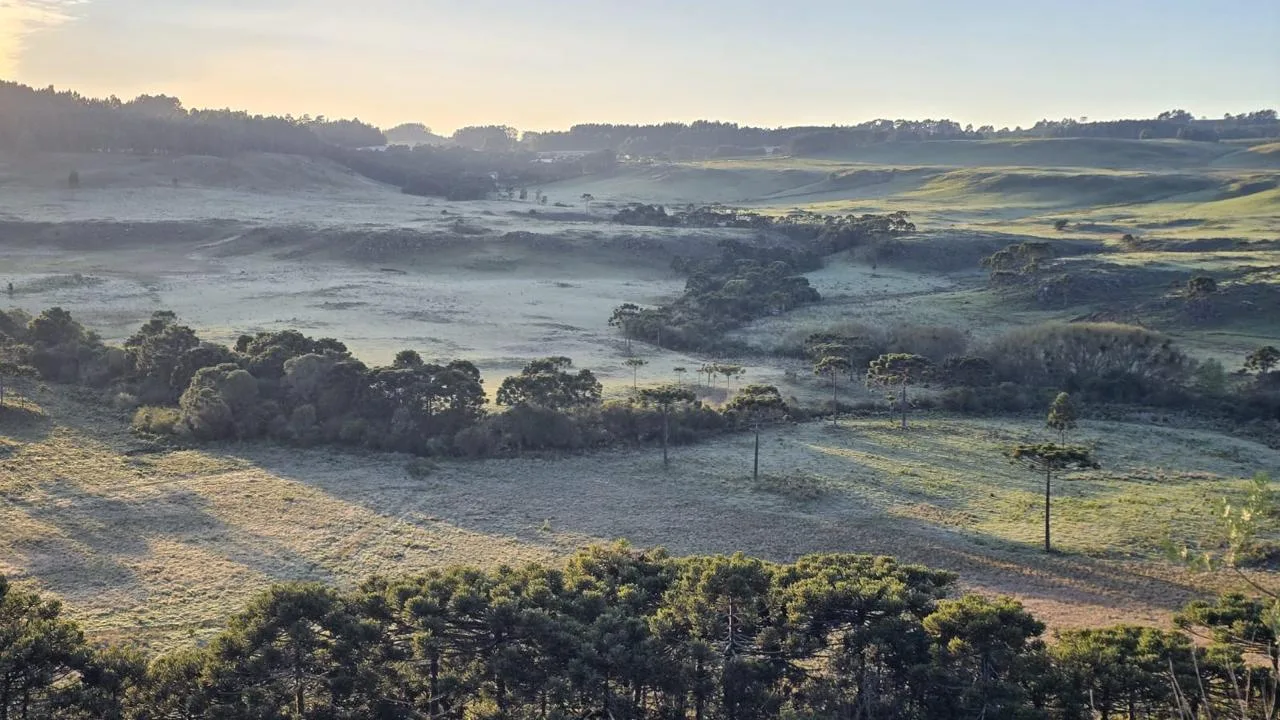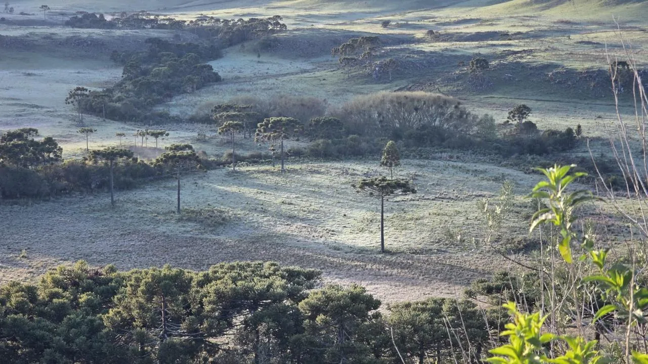Geada em outubro! Paisagem fica branca na Serra de SC; veja imagens