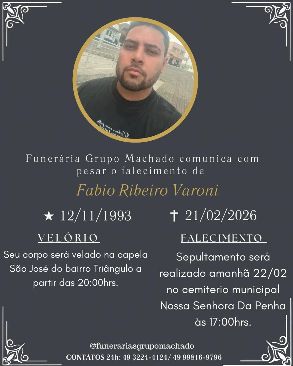 Foi identificado como Fabio Ribeiro Varoni, de 33 anos, o homem que morreu eletrocutado enquanto trabalhava em um poste de energia elétrica em Lages, na Serra Catarinense.