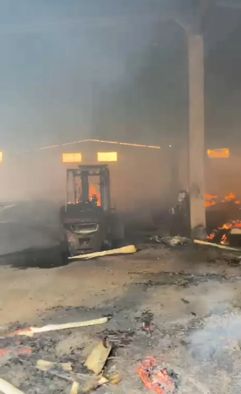 Fogo consumiu barracão, destruiu estoque de lâminas, empilhadeiras e um veículo