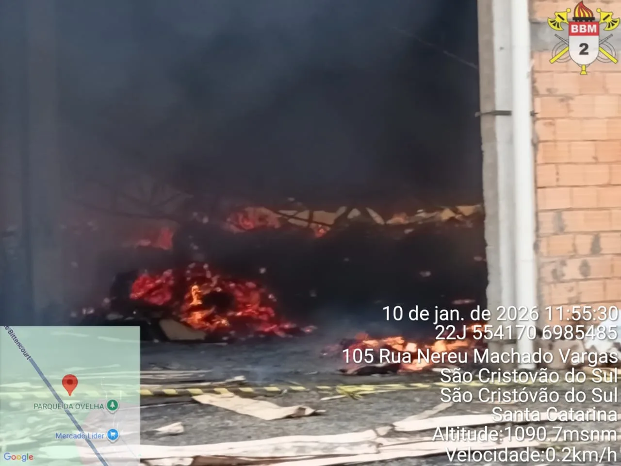 Um incêndio de grandes proporções destruiu uma madeireira laminadora em São Cristóvão do Sul, no Planalto Serrano. O chamado foi registrado às 5h19 de sábado (10), e o atendimento mobilizou o Corpo de Bombeiros Militar de Curitibanos, com apoio da equipe de Santa Cecília.
