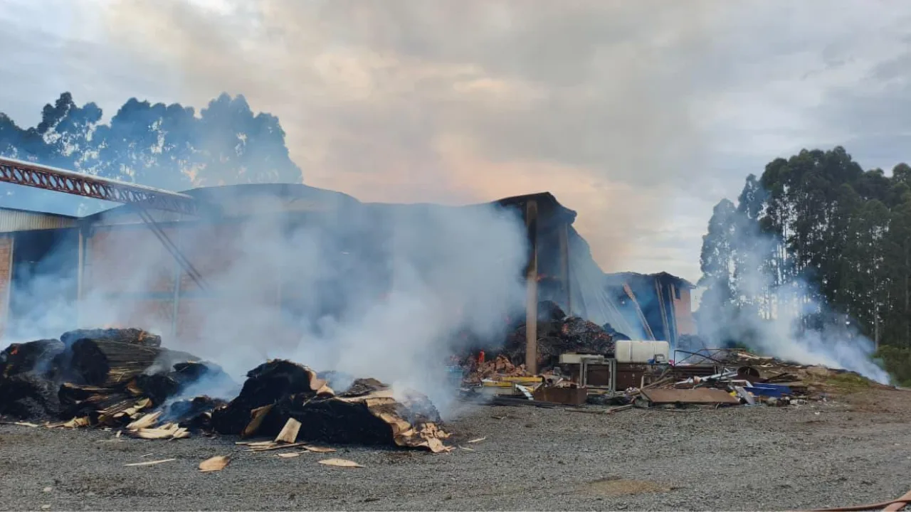 Um incêndio de grandes proporções destruiu uma madeireira laminadora em São Cristóvão do Sul, no Planalto Serrano. O chamado foi registrado às 5h19 de sábado (10), e o atendimento mobilizou o Corpo de Bombeiros Militar de Curitibanos, com apoio da equipe de Santa Cecília.