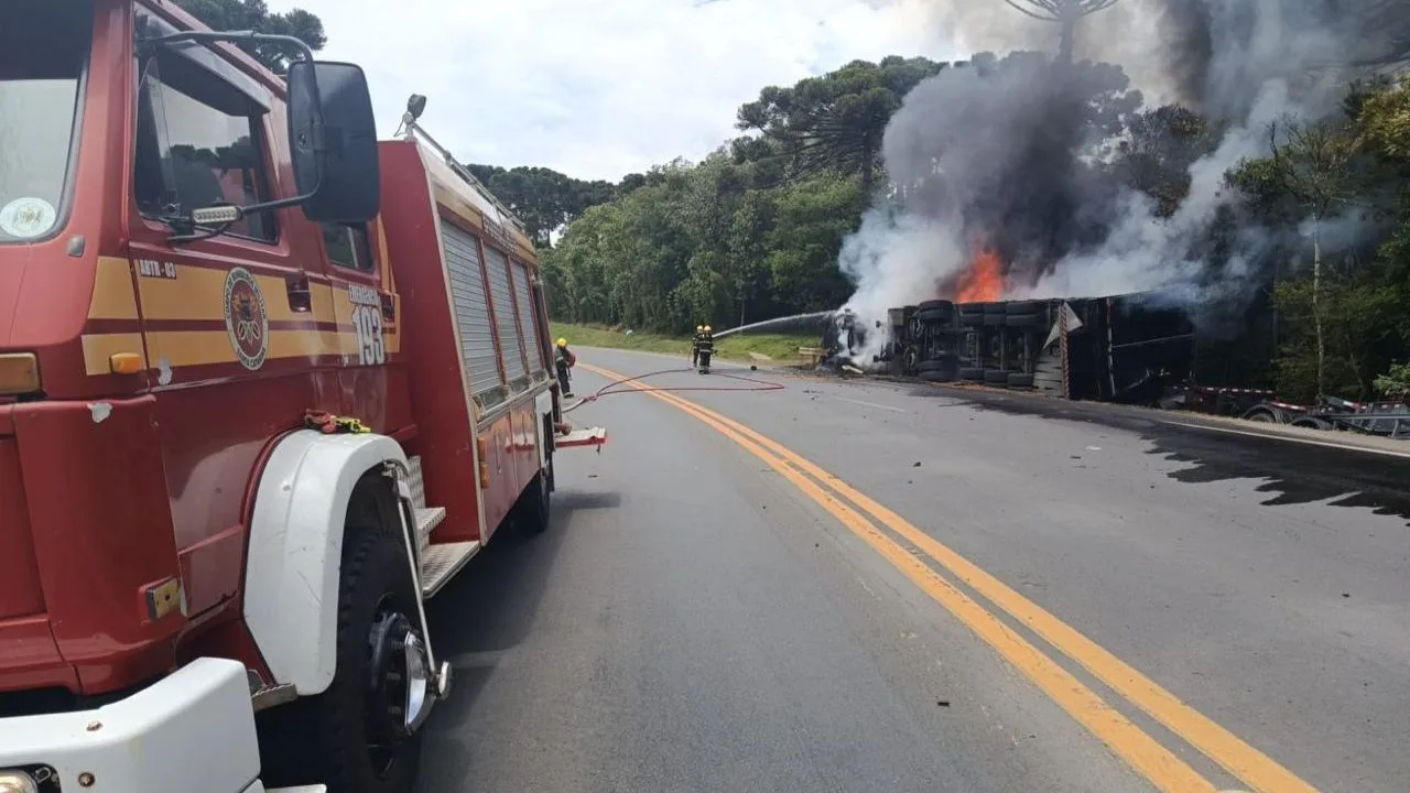 Segundo o relatório do Corpo de Bombeiros Militar, a colisão envolveu um cavalo-trator Iveco, conduzido por um homem de 49 anos que saiu ileso, e um conjunto Volvo FH carregado com 38 toneladas de MDF. O impacto causou um incêndio que atingiu integralmente a carga de madeira do segundo veículo.