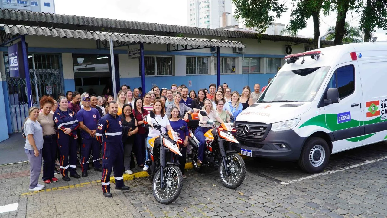 A Prefeitura de Lages oficializou, na tarde desta terça-feira (31), a entrega de novos veículos e equipamentos para a rede municipal de saúde. O pacote inclui duas motolâncias destinadas ao Serviço de Atendimento Móvel de Urgência (Samu) e uma nova ambulância, frutos de uma parceria com o Governo do Estado para ampliar a capacidade de resposta em casos de emergência.